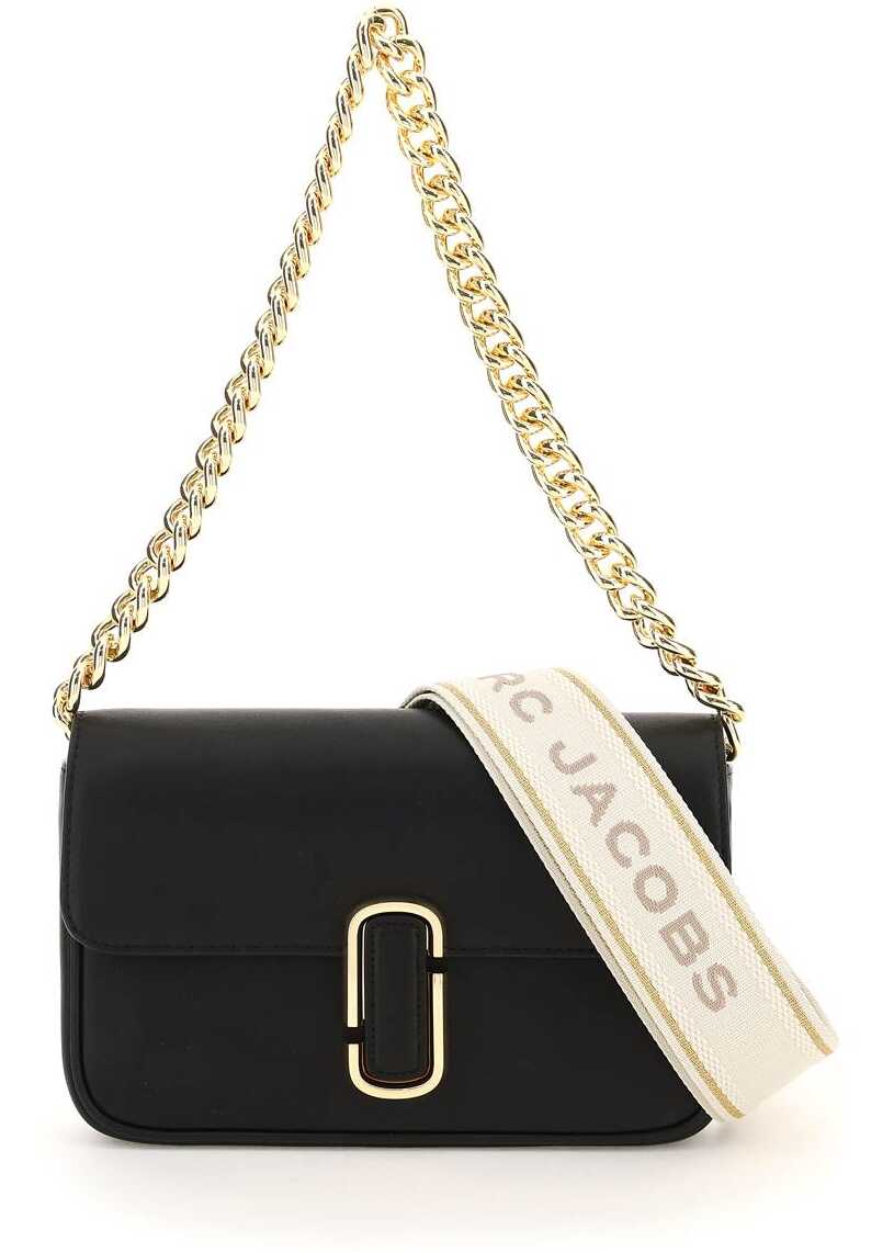 Marc Jacobs smooth leather bag characterized by the flap with magnetic closure enriched with the iconic metal Double J monogram. Chain handle to carry on the shoulder or by hand and detachable and adjustable fabric shoulder strap with jacquard logo and leather details. Rear slit pocket with gold-tone logo print. Fabric lining, one inner zipped flat pocket and a slit pocket under the flap. Gold-finished metalware.