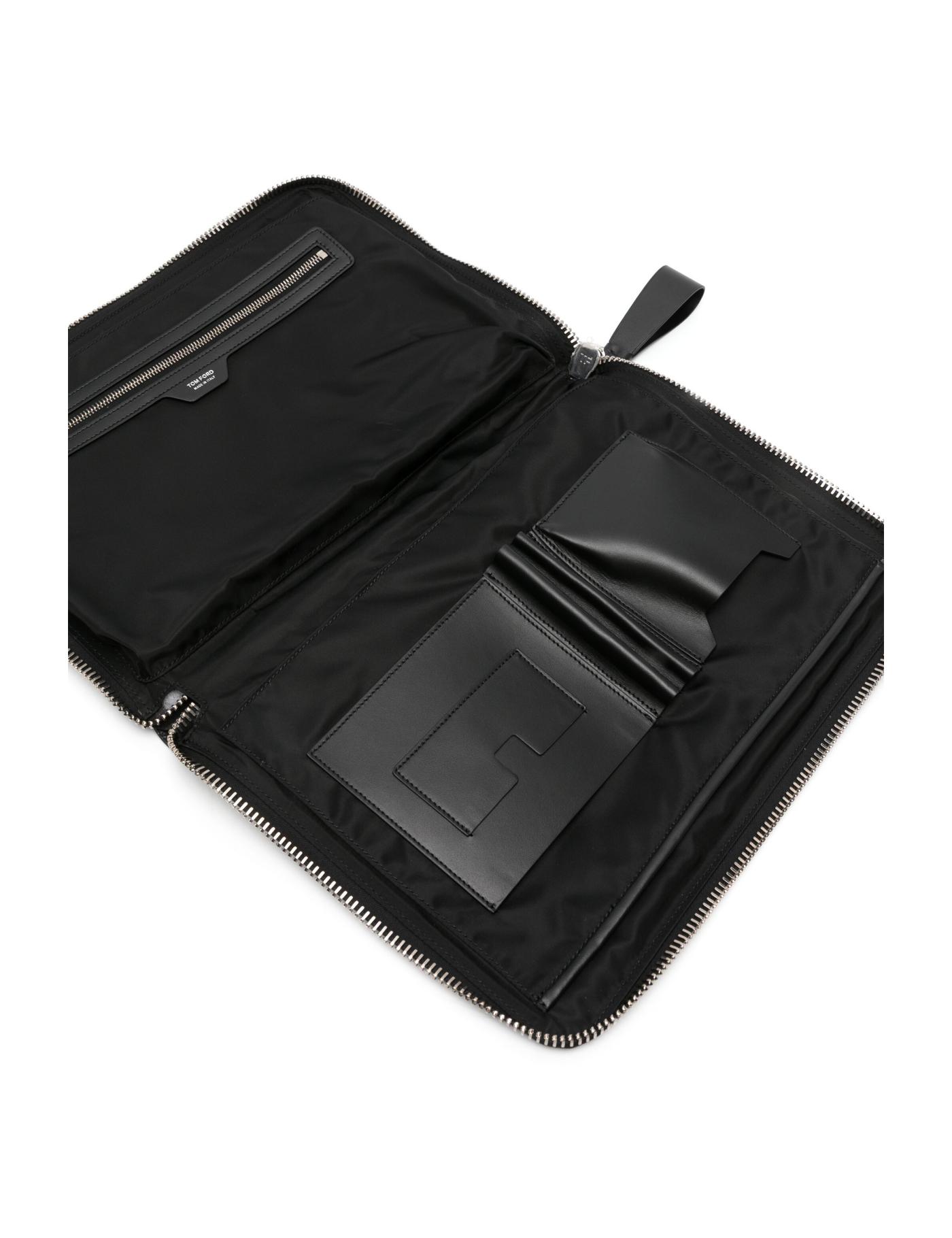 Sleek and timeless, this laptop bag from Tom Ford reflects the brand's signature style. This is highlighted through a monochromatic hue, logo patch a functional all-around zip fastening.