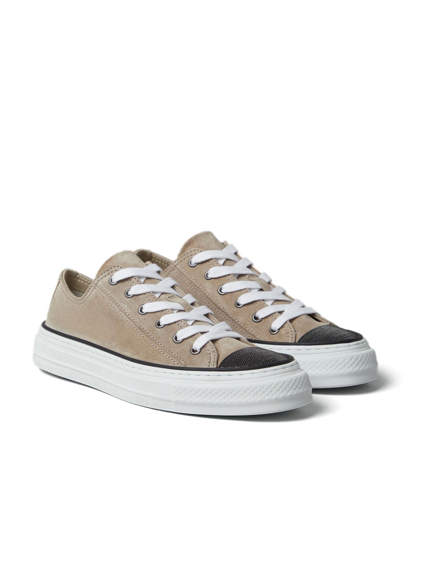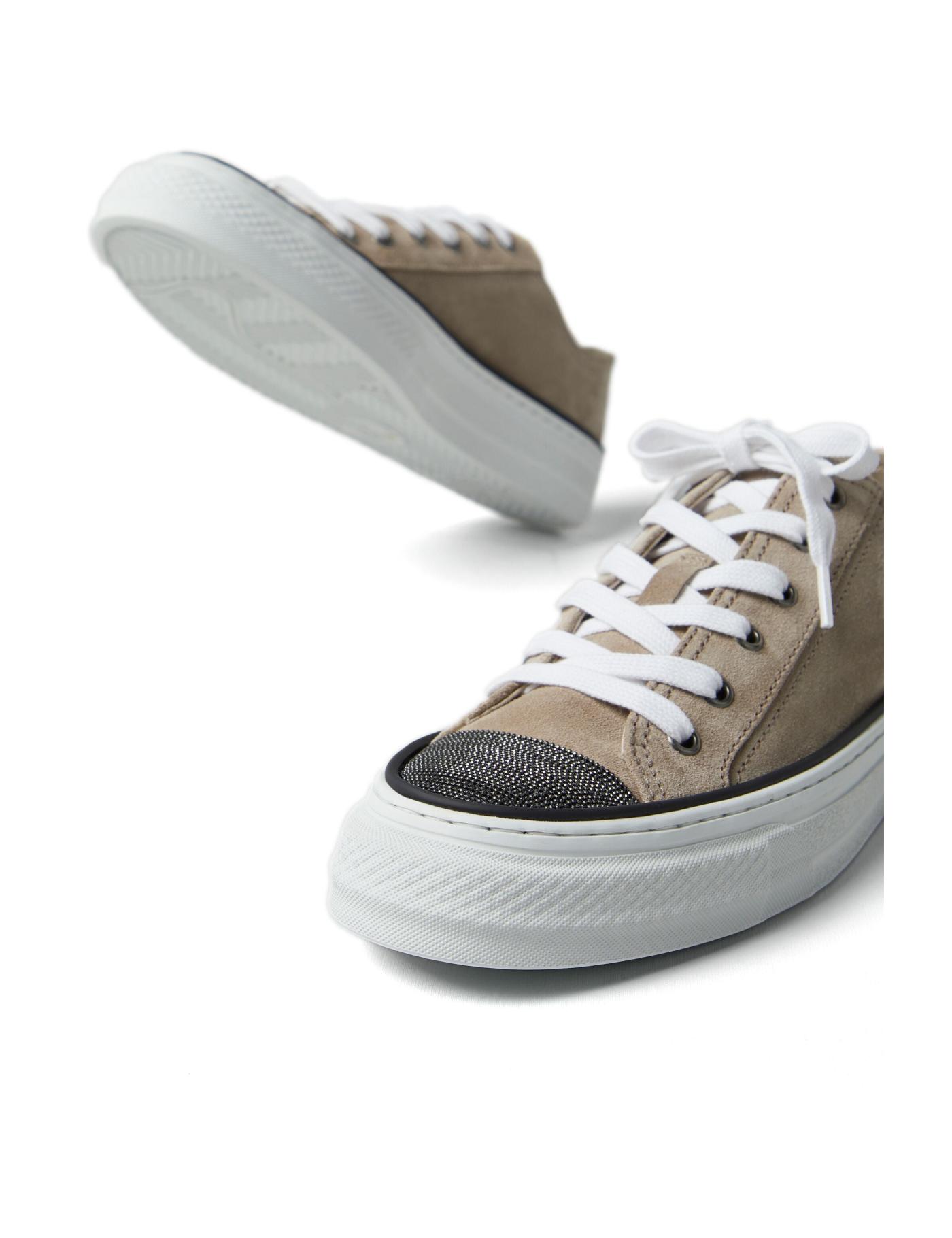 Brunello Cucinelli's signature Monili embellishment, comprised of intricate faceted chain-link, adorns the round toe of these walnut brown sneakers. They're expertly crafted in Italy from supple calf suede whilst sitting atop a chunky rubber sole.