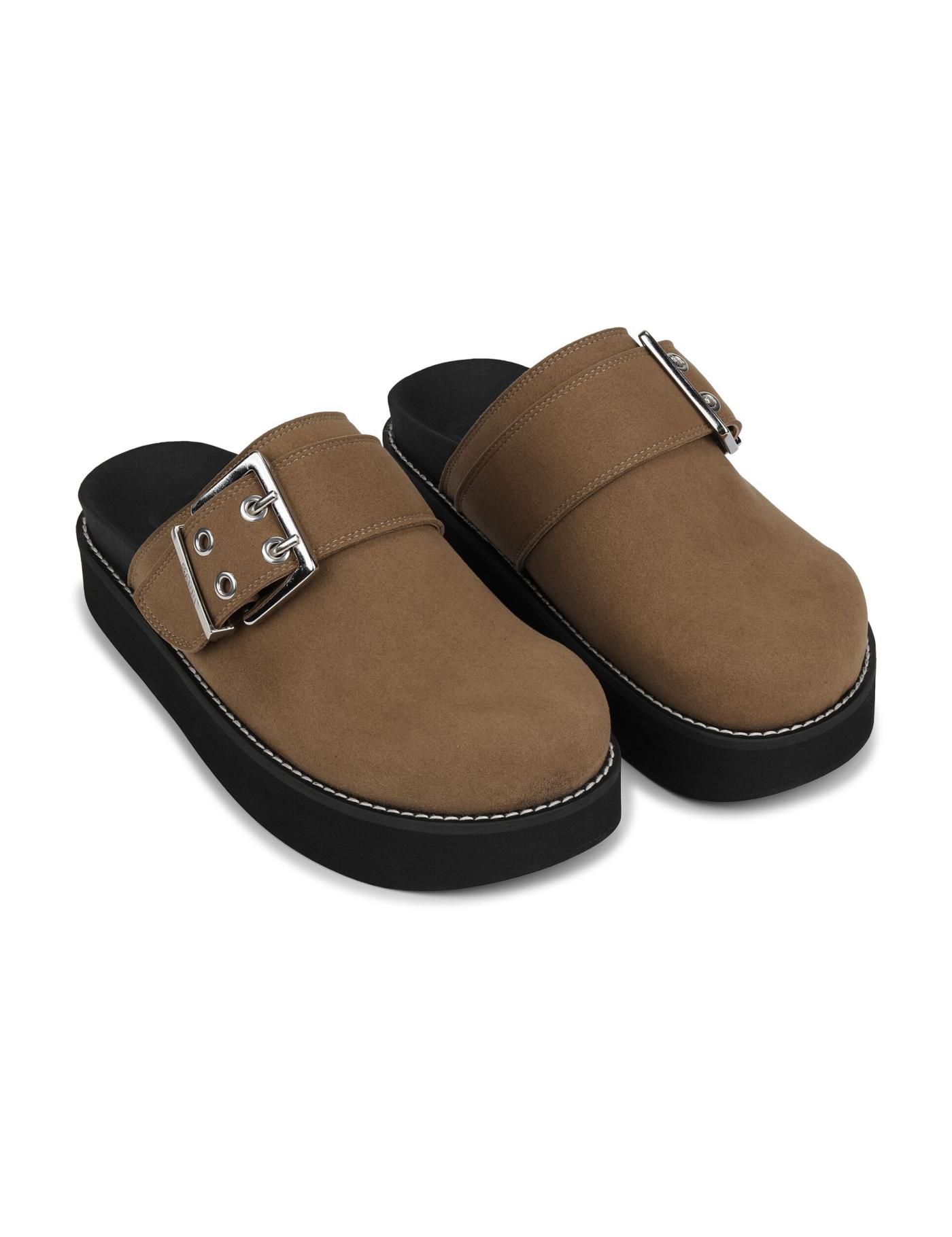 buckle-strap suede mules