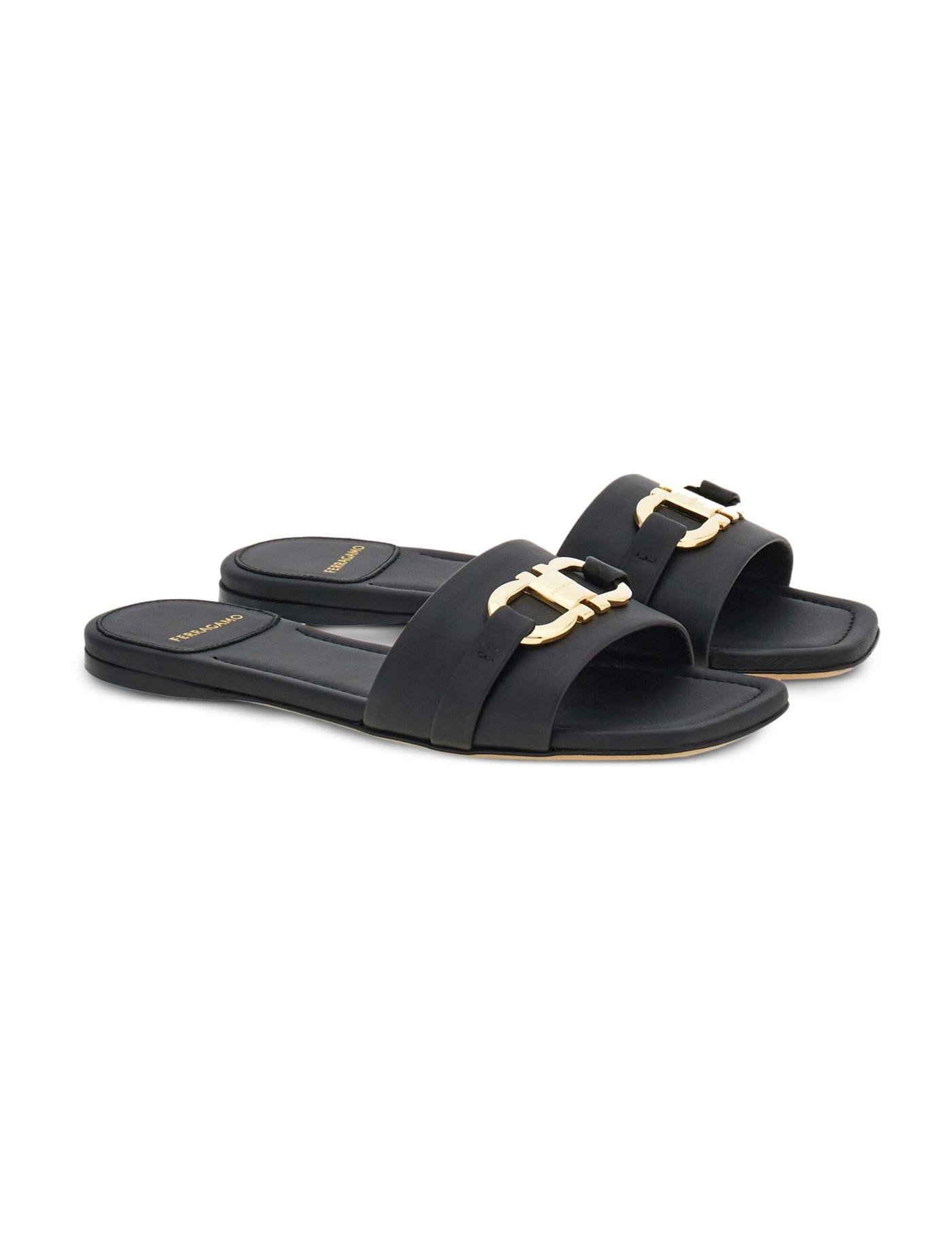 Gancini-plaque leather slides