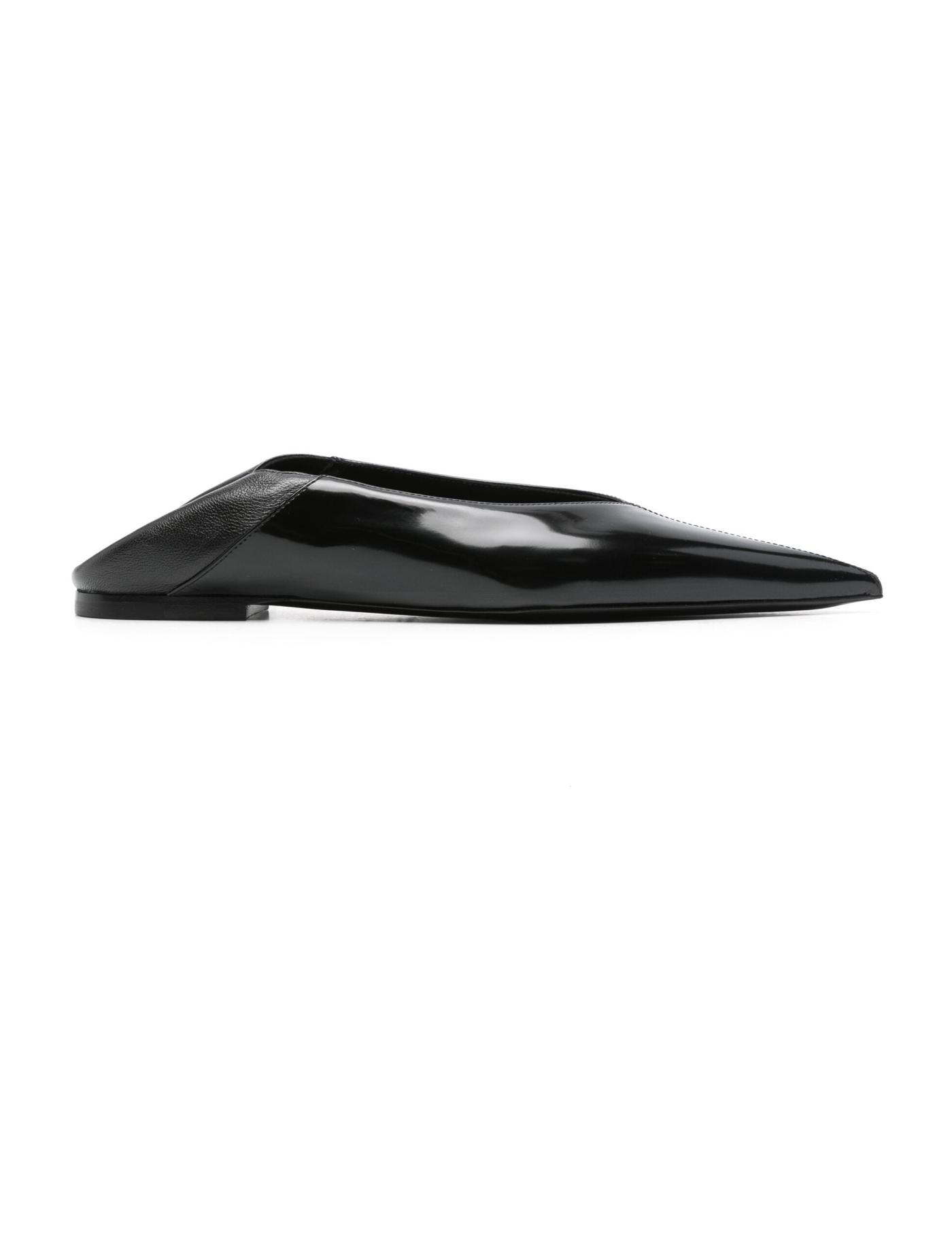 The sleek pointed-toe silhouette of these Nour slippers is an ode to Saint Laurent's confident spirit. This iteration is crafted from black leather and accented by patent-finish panels. The flexible heel counter can worn up or folded down.