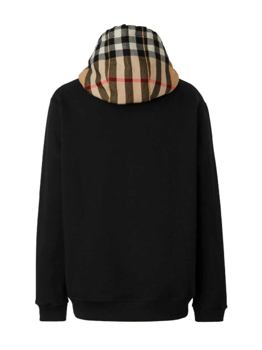 black archive beige cotton ribbed trim Vintage Check pattern drawstring hood long sleeves front pouch pocket