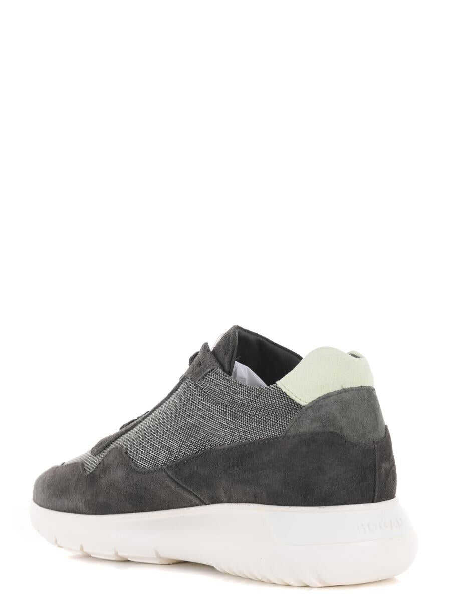 Hogan Interactive3 sneakers in dark green nylon and suede. Contrasting lime green inserts. Side H in white leather and fluorescent profiles. Lace up. Logo on the tongue. Internal memory foam insole. 50 mm ergonomic rubber sole. Measurement in photo 6