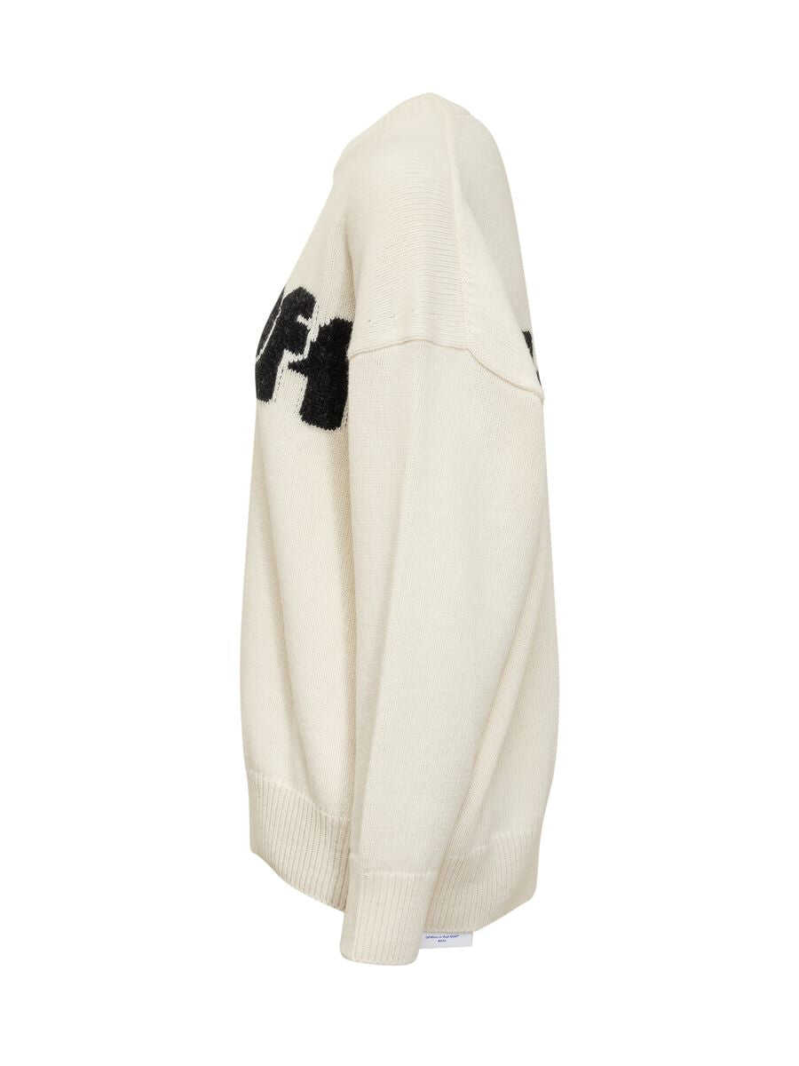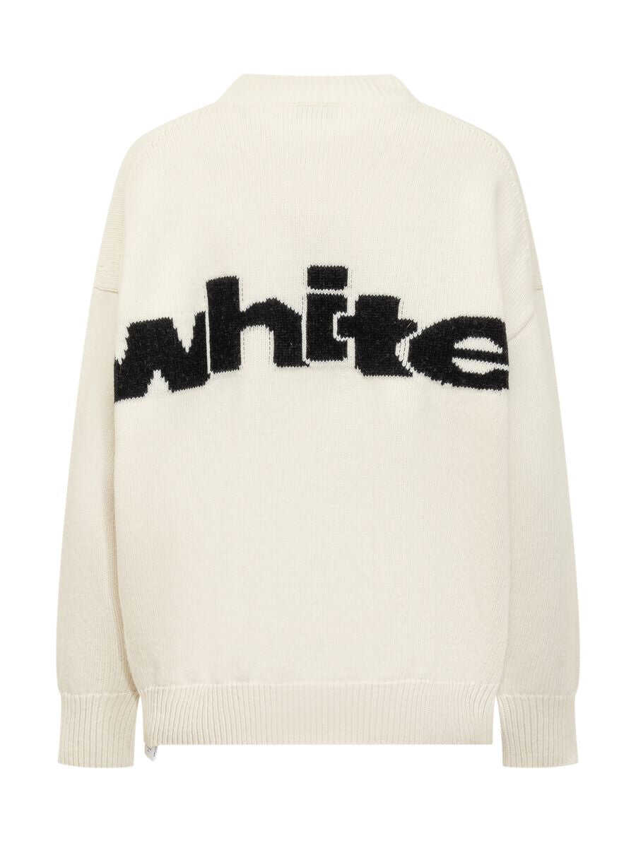 Wool-blend long-sleeved sweater. Crew neck. Ribbed hems. Jacquard logo on chest. Jacquard logo on the back.