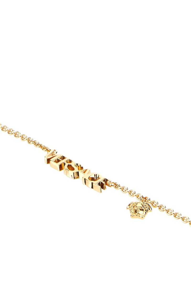 Gold-tone logo-plaque necklace from VERSACE featuring logo plaque, Medusa Head motif, cable-link chain and lobster claw fastening.