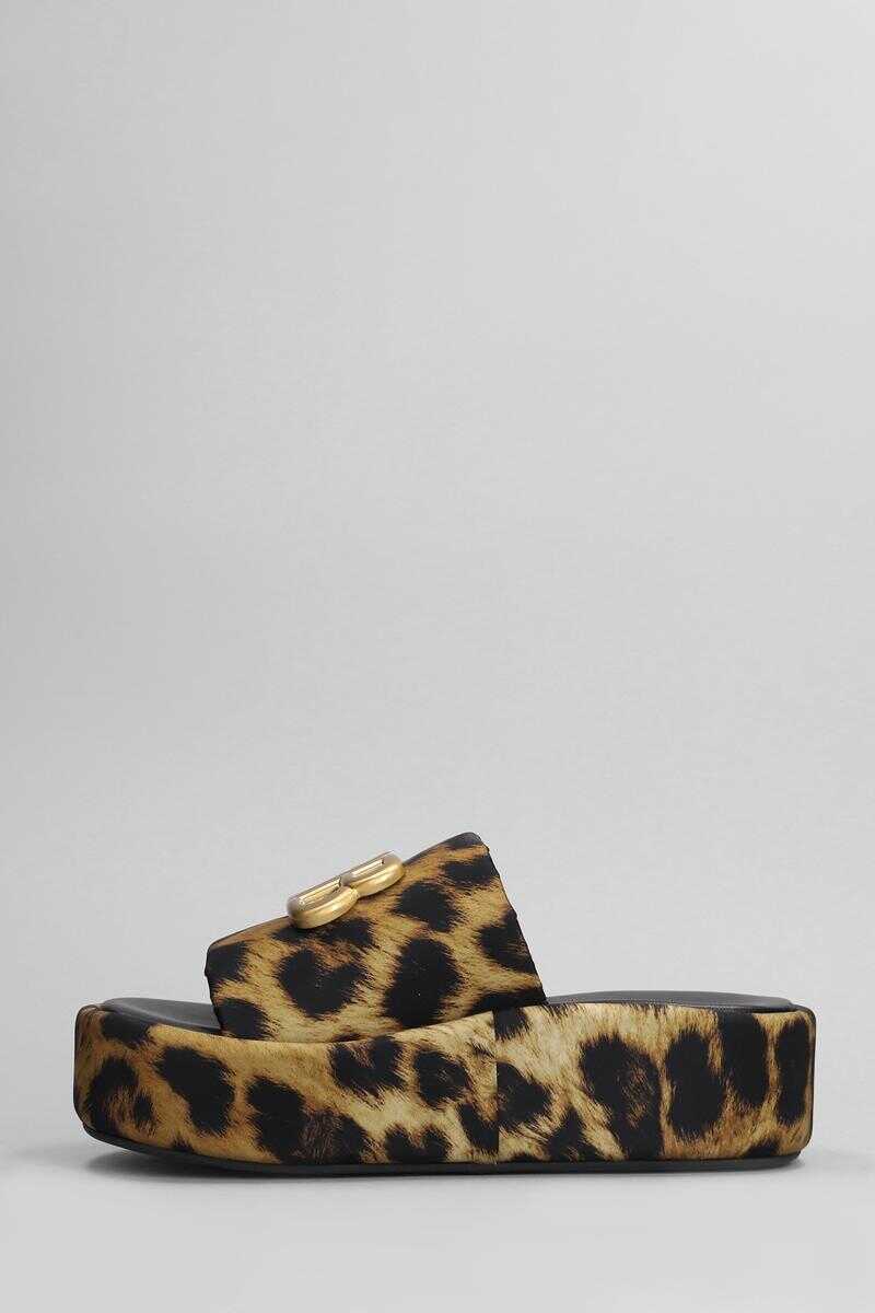 Flats in Animalier polyamide, mule , one strap, front application, animalier pattern, platform 50 mm, 100% polyamide, Made in Italy