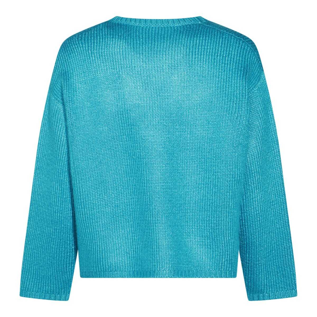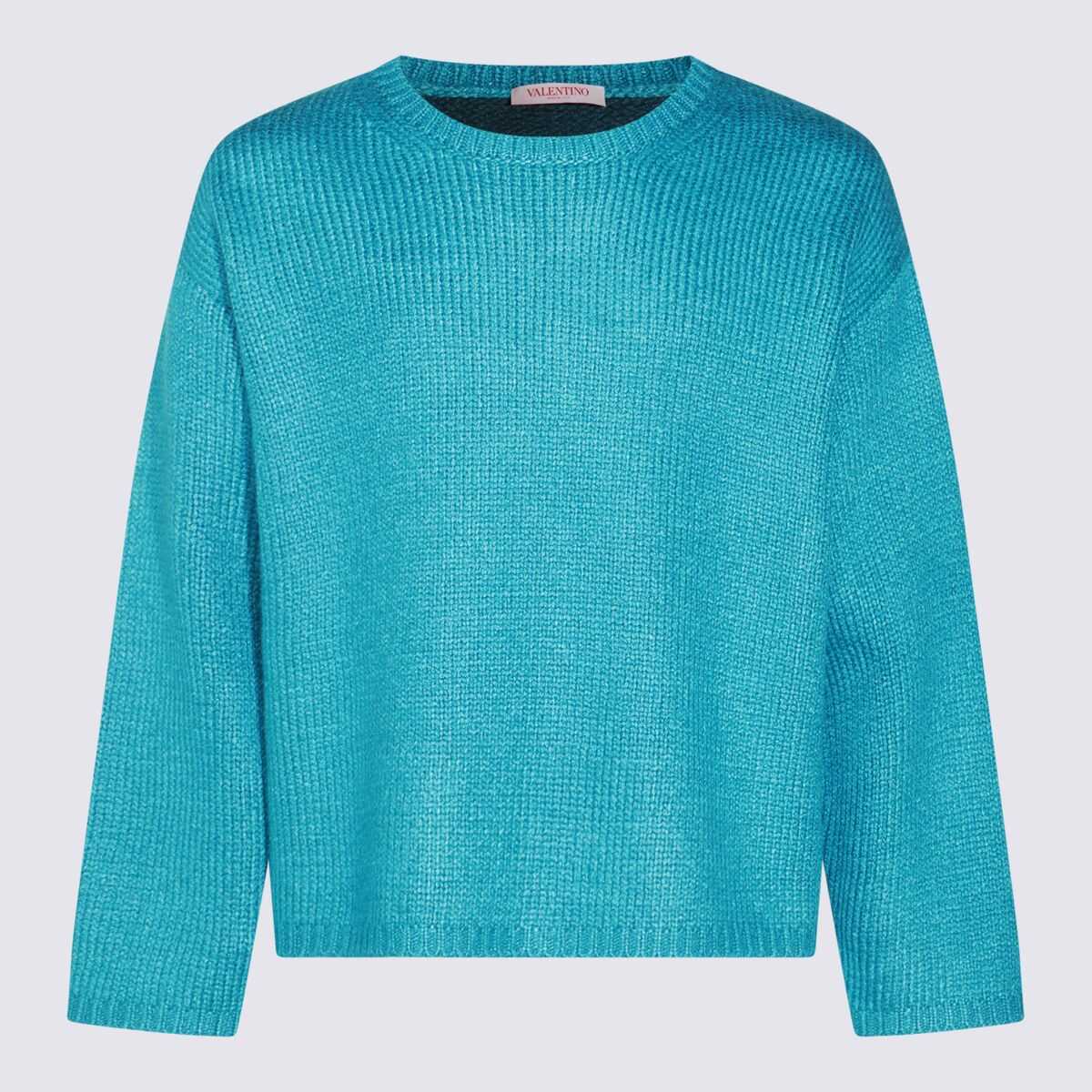 Sky blue silk sweater from Valentino featuring long sleeves, round neck, regular fit and ribbed hems.