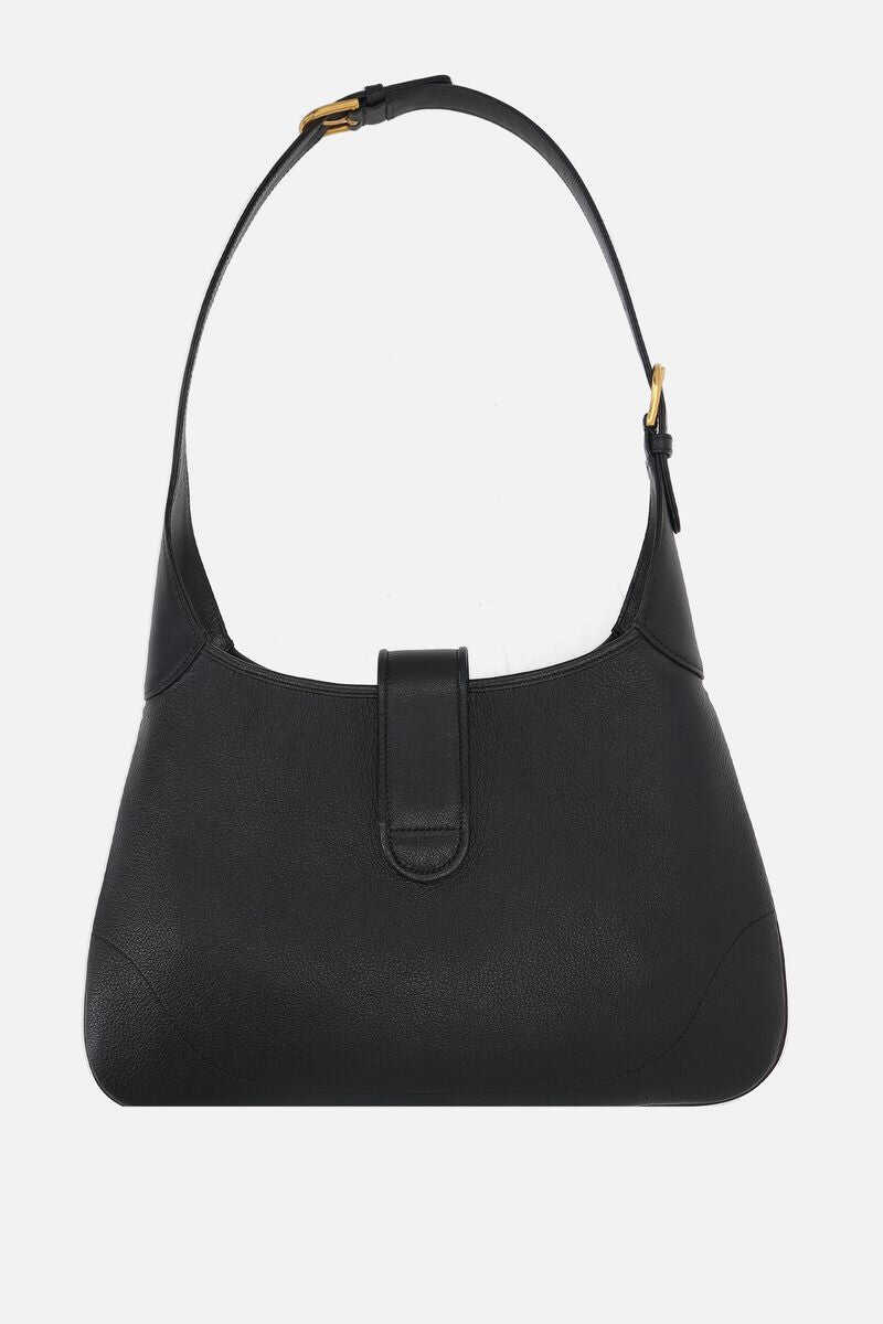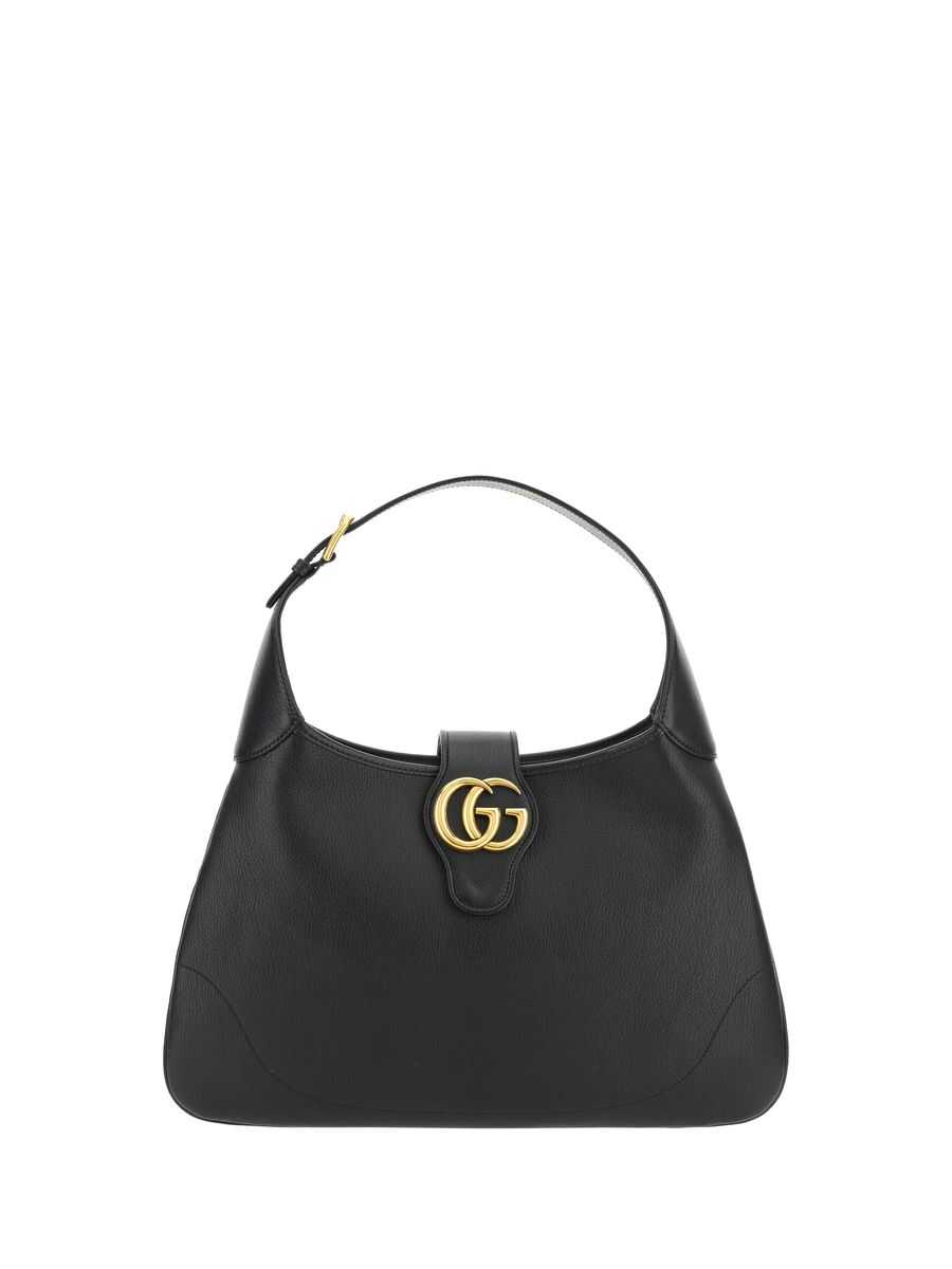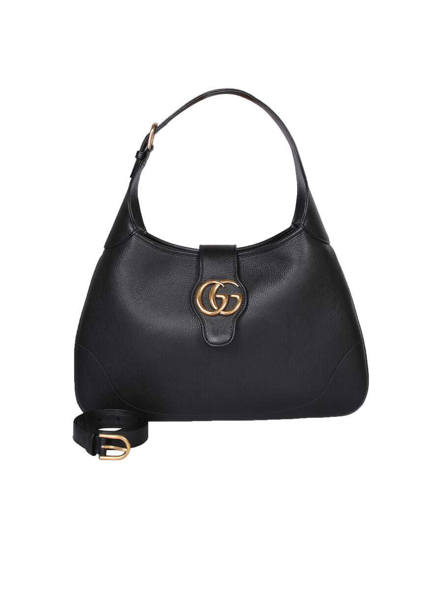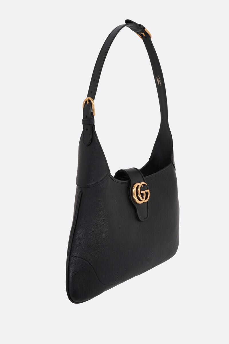 Gucci's hobo bag crafted in black grained leather. It features gold-tone hardware, magnetic closure with metal Double G and three-way adjustable strap. Black suede-effect fabric-lined interior with zip pocket.