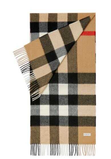 beige multicolour cashmere Vintage Check pattern logo patch to the front fringed edge We've partnered with Good On You — an independent agency that rates how brands perform in relation to their impact on the planet, people and animals, with a multi-criteria rating simplified to a five points scale. In order to be awarded our conscious label, larger brands need to score a minimum of four out of five ('Good'), while smaller brands must score at least three out of five ('It's A Start'). This item comes from a brand rated three out of five ('It's A Start') by Good on You at the time it was added on FARFETCH. Please note, this is a brand-level rating and does not guarantee that this product is made with conscious materials. Learn more about what makes a product Conscious on our Conscious Criteria page