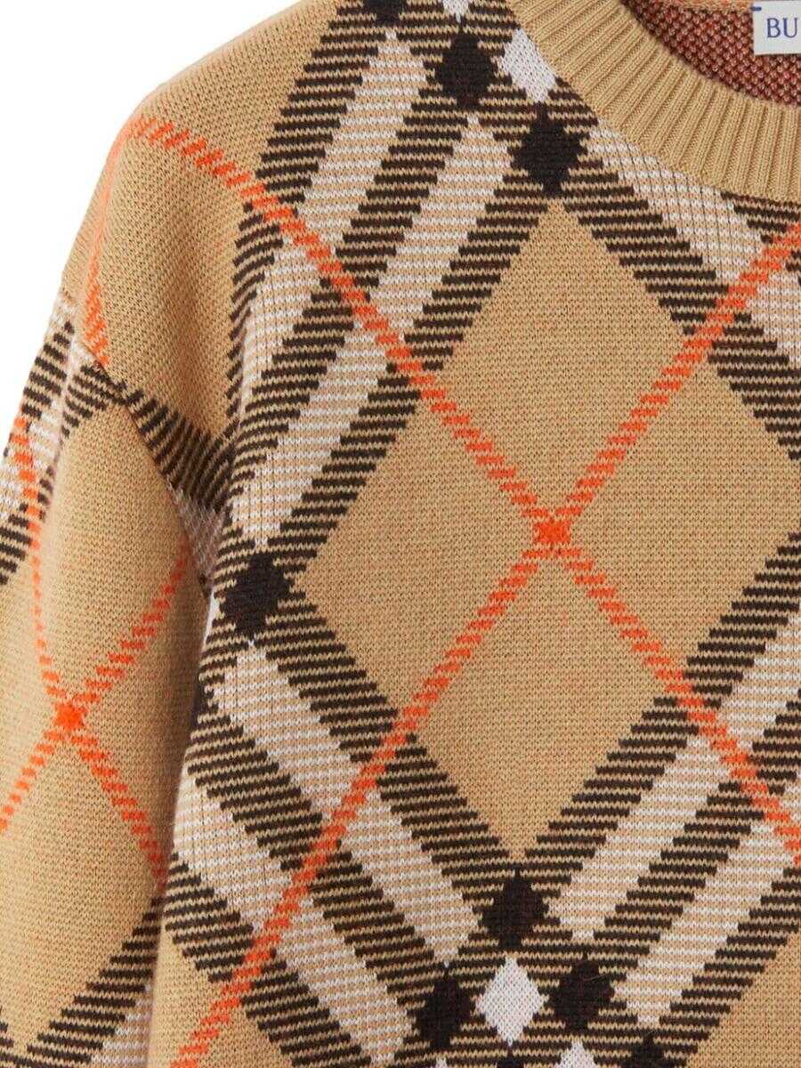 light brown/multicolour wool blend nova check pattern ribbed trim crew neck drop shoulder long sleeves straight hem We've partnered with Good On You — an independent agency that rates how brands perform in relation to their impact on the planet, people and animals, with a multi-criteria rating simplified to a five points scale. In order to be awarded our conscious label, larger brands need to score a minimum of four out of five ('Good'), while smaller brands must score at least three out of five ('It's A Start'). This item comes from a brand rated three out of five ('It's A Start') by Good on You at the time it was added on FARFETCH. Please note, this is a brand-level rating and does not guarantee that this product is made with conscious materials. Learn more about what makes a product Conscious on our Conscious Criteria page