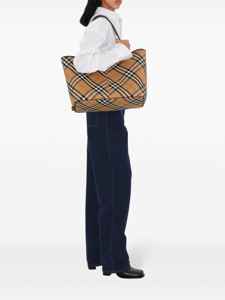 light brown/black cotton/leather Vintage Check pattern leather trim removable pouch open top two top handles main compartment This piece comes complete with a protective dust bag.