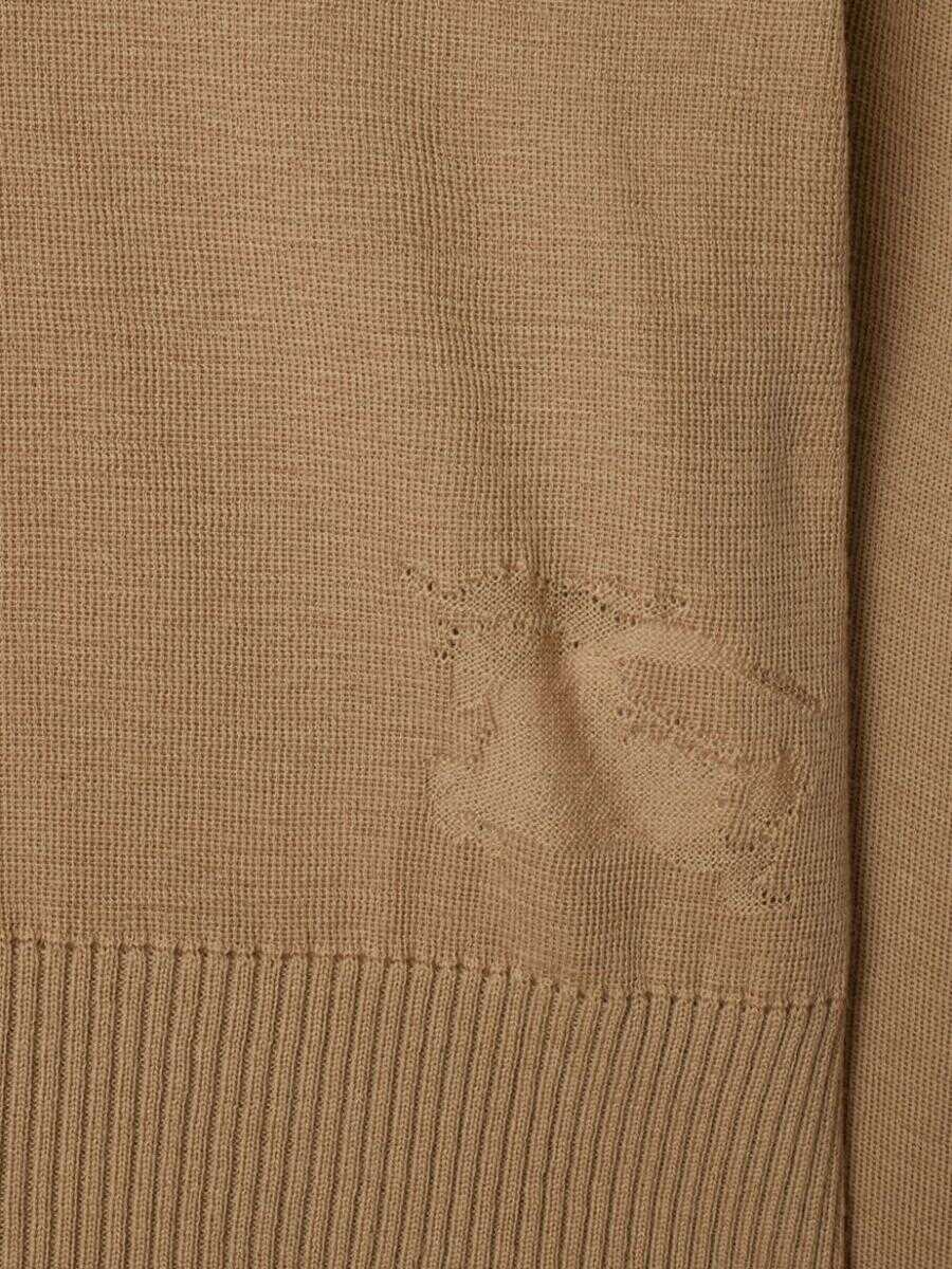 brown wool fine knit signature Equestrian Knight motif high neck drop shoulder long sleeves ribbed cuffs and hem We've partnered with Good On You — an independent agency that rates how brands perform in relation to their impact on the planet, people and animals, with a multi-criteria rating simplified to a five points scale. In order to be awarded our conscious label, larger brands need to score a minimum of four out of five ('Good'), while smaller brands must score at least three out of five ('It's A Start'). This item comes from a brand rated three out of five ('It's A Start') by Good on You at the time it was added on FARFETCH. Please note, this is a brand-level rating and does not guarantee that this product is made with conscious materials. Learn more about what makes a product Conscious on our Conscious Criteria page