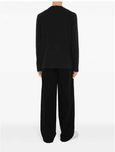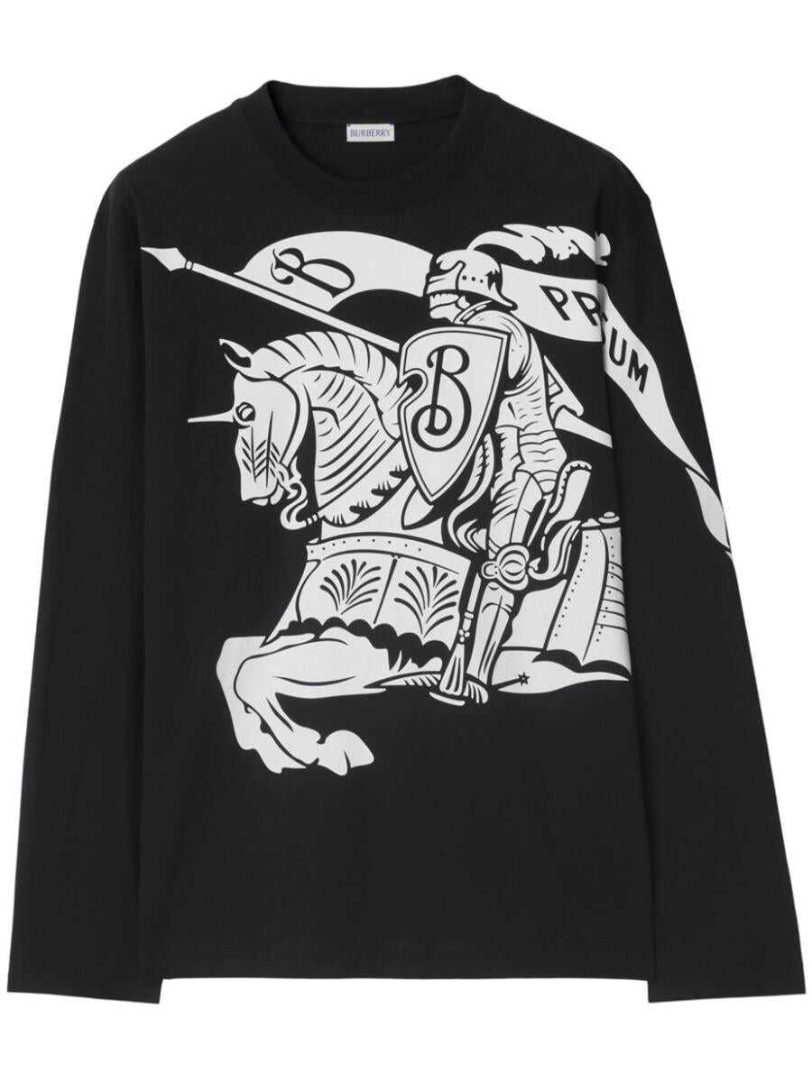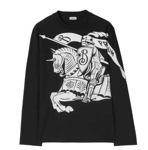 black/white cotton logo print to the front signature Equestrian Knight motif crew neck long sleeves straight hem