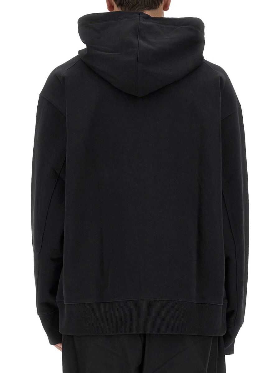 Hooded sweatshirt Y-3 in Black cotton. Hood with drawstring. Long sleeves. Contrast "Y-3" logo on the chest. Front pouch pocket. Ribbed cuffs and bottom.