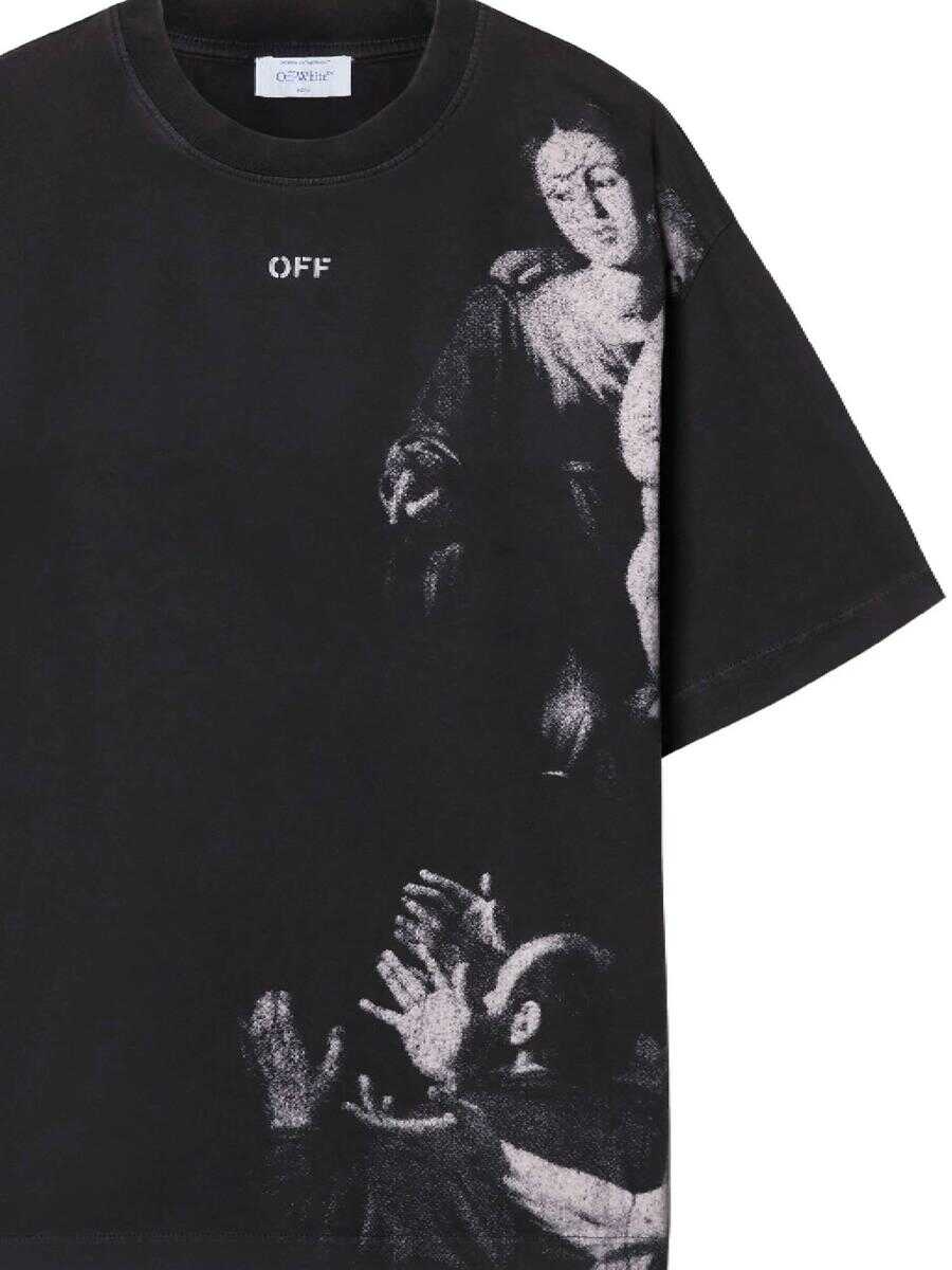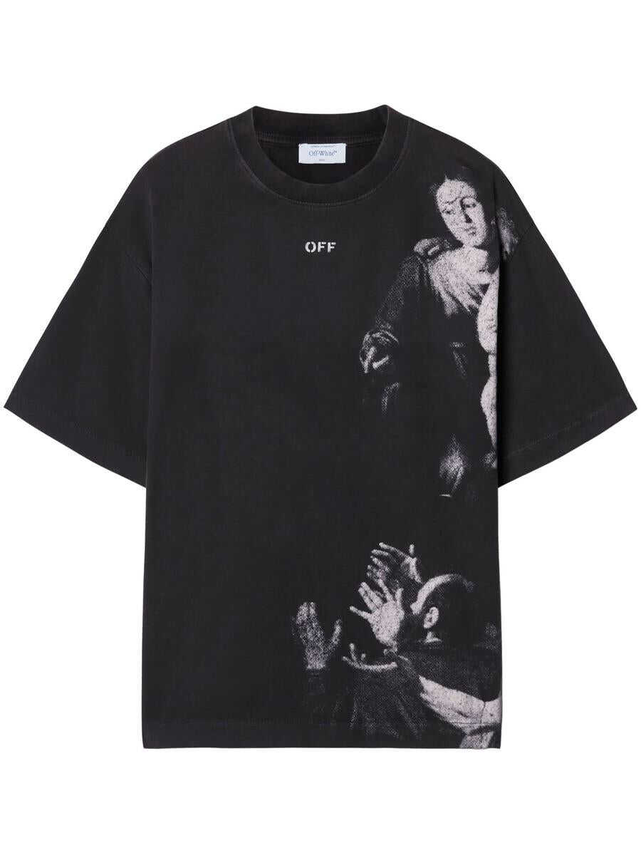 black cotton jersey texture signature Arrows motif graphic print to the front crew neck drop shoulder short sleeves straight hem