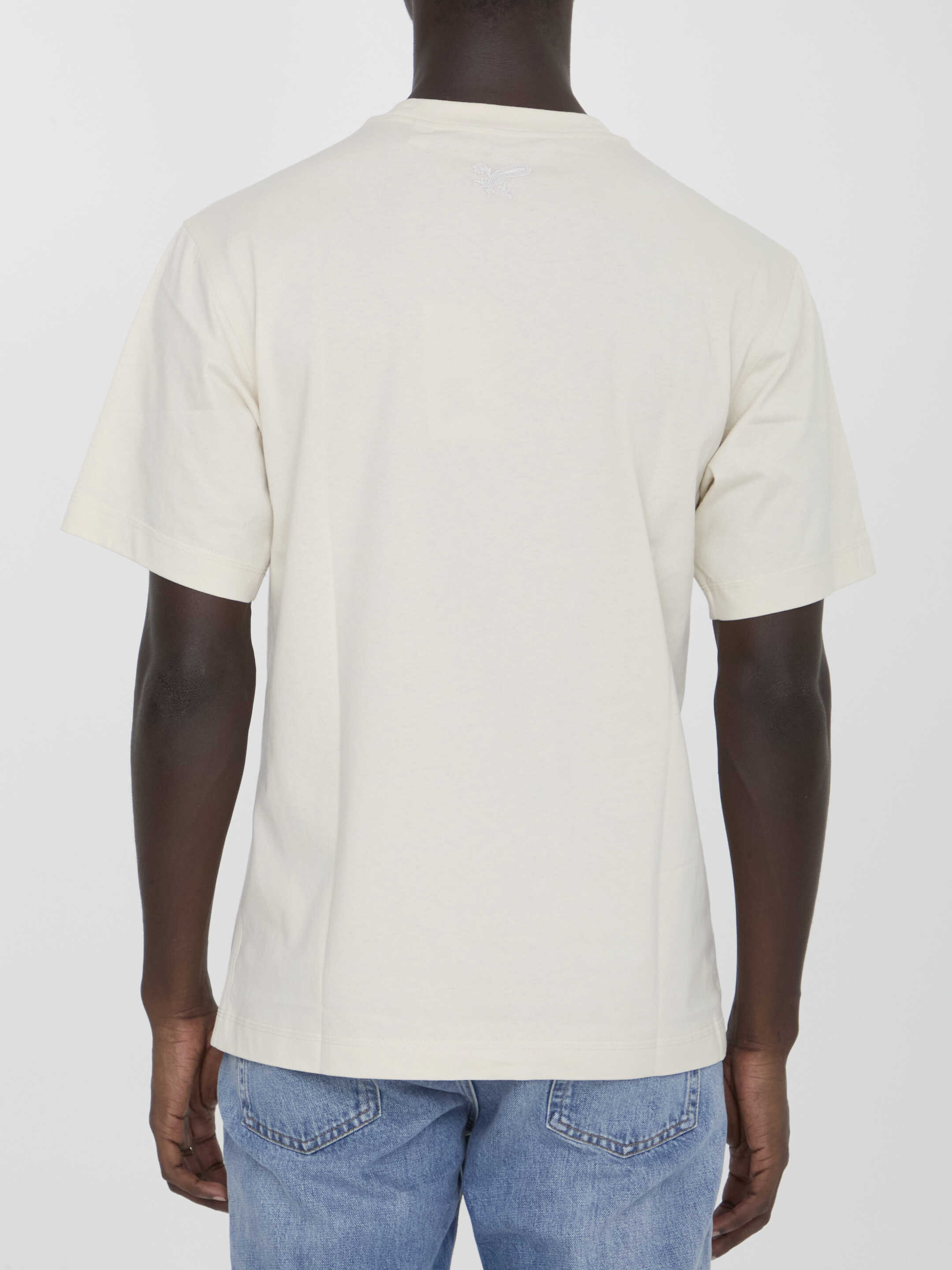 Short-sleeved crewneck t-shirt in cream-colored cotton jersey with Burberry logo print with Paisley pattern. Ribbed collar. Regular fit.