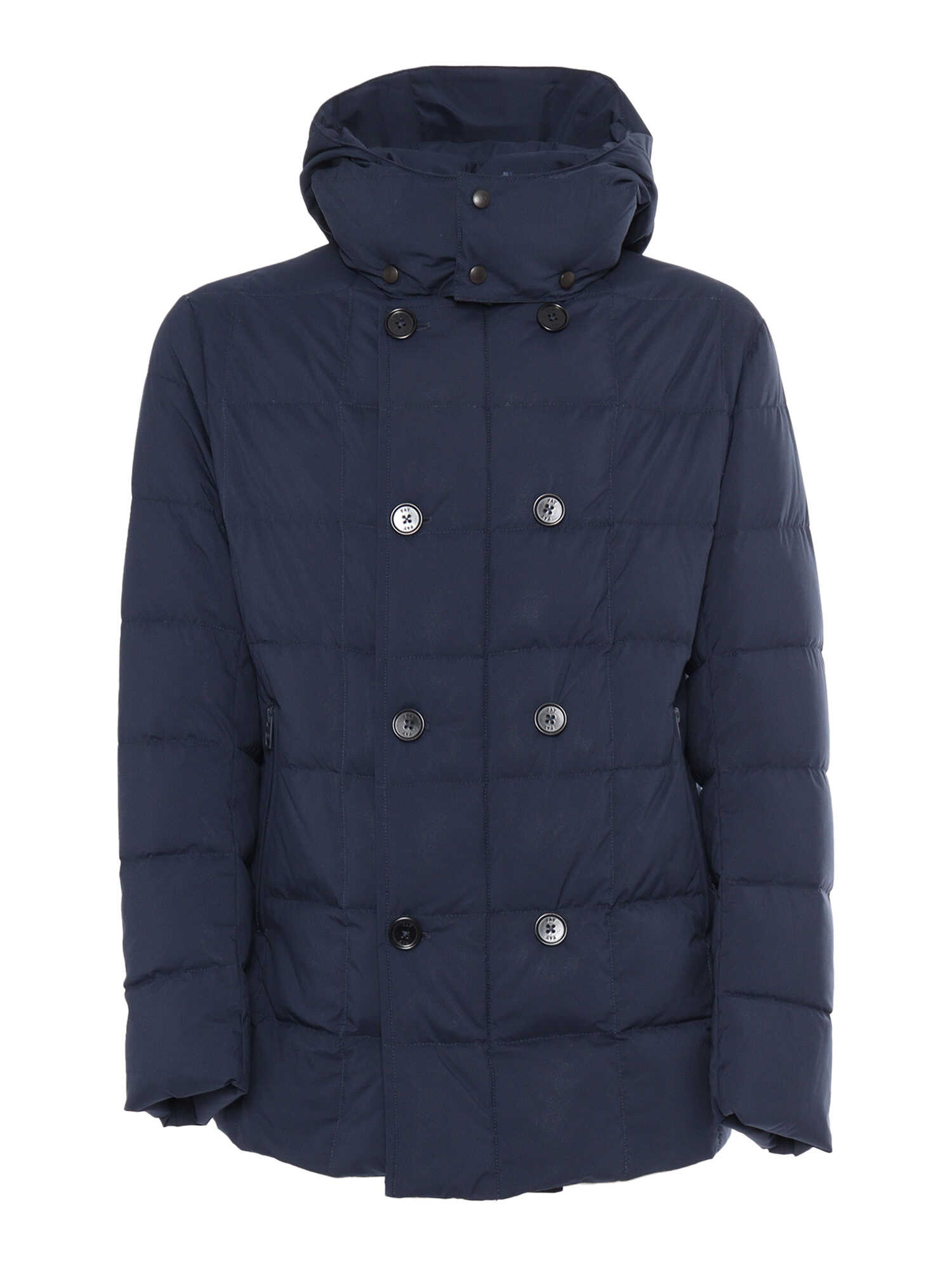 DOUBLE BREASTED HOODED DOWN JACKET
