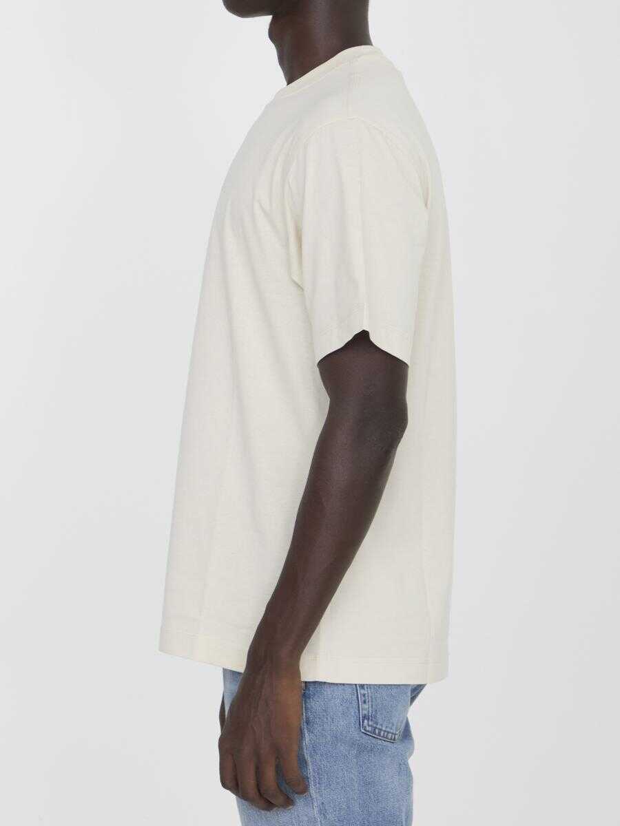 Short-sleeved crewneck t-shirt in cream-colored cotton jersey with Burberry logo print with Paisley pattern. Ribbed collar. Regular fit.