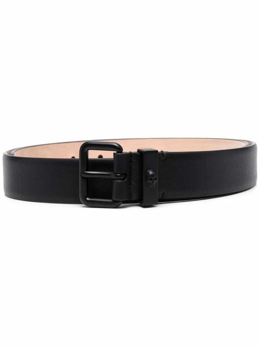 - Alexander McQueen - Men's calf leather belt with metal skull - Black - Calf leather - Buckle closure - Metal skull on the loop