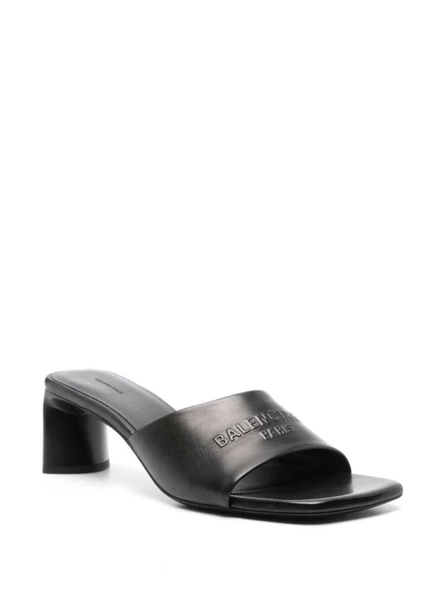 black leather smooth grain slip-on style embossed logo to the front square open toe branded leather insole leather outsole 60mm block heel We've partnered with Good On You — an independent agency that rates how brands perform in relation to their impact on the planet, people and animals, with a multi-criteria rating simplified to a five points scale. In order to be awarded our conscious label, larger brands need to score a minimum of four out of five ('Good'), while smaller brands must score at least three out of five ('It's a start'). This item comes from a brand rated four out of five ('Good') by Good on You at the time it was added on FARFETCH. Please note, this is a brand-level rating and does not guarantee that this product is made with conscious materials. Learn more about what makes a product Conscious on our Conscious Criteria page