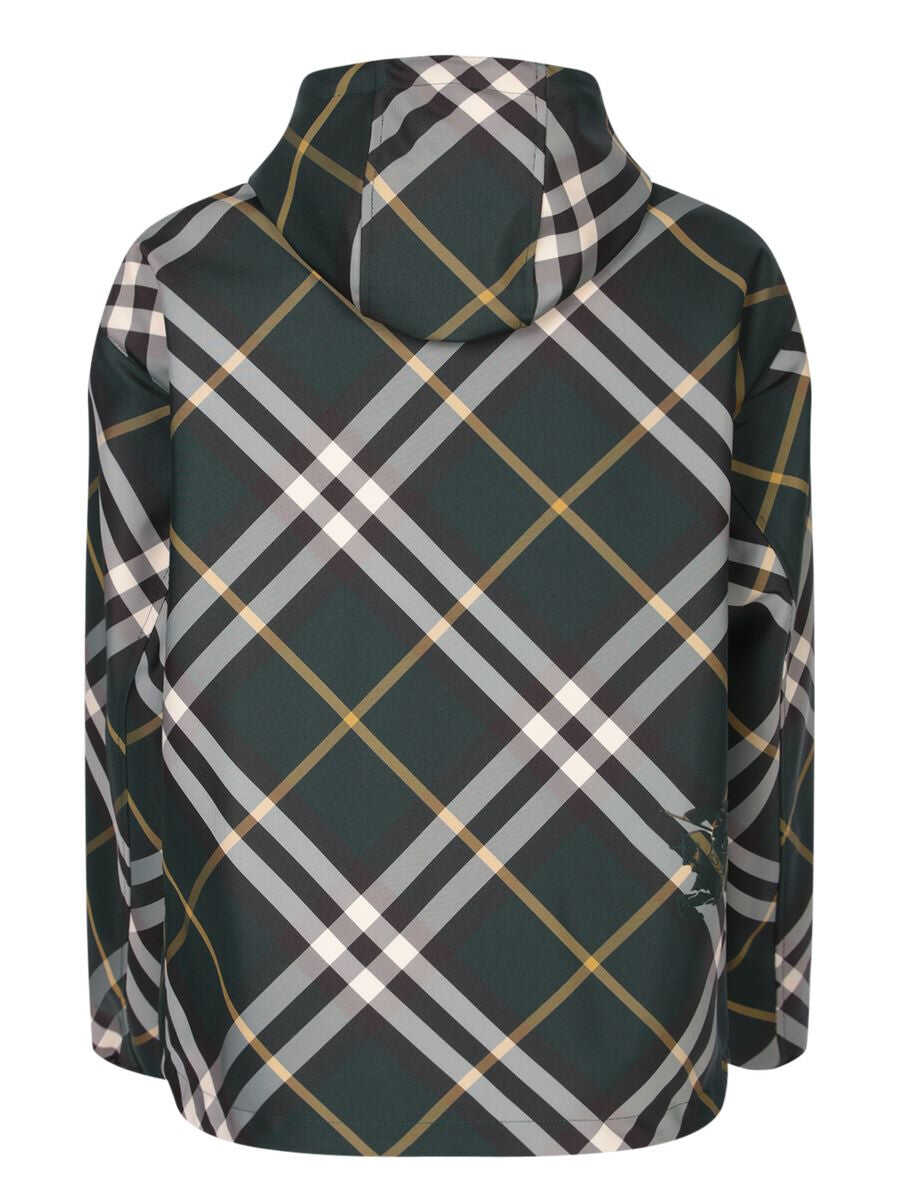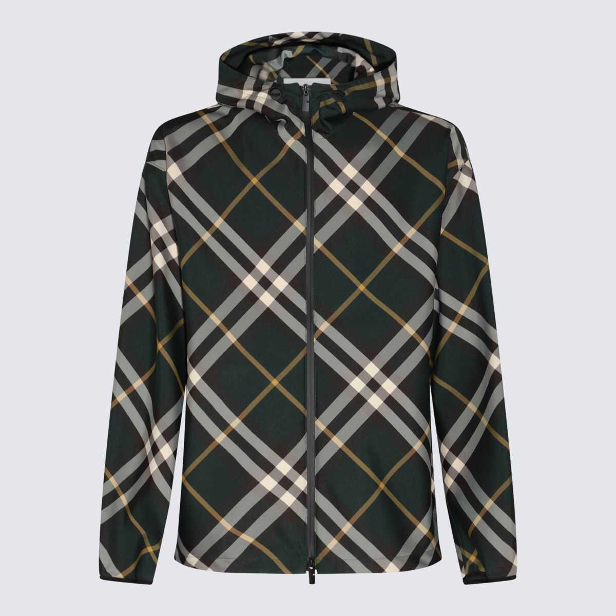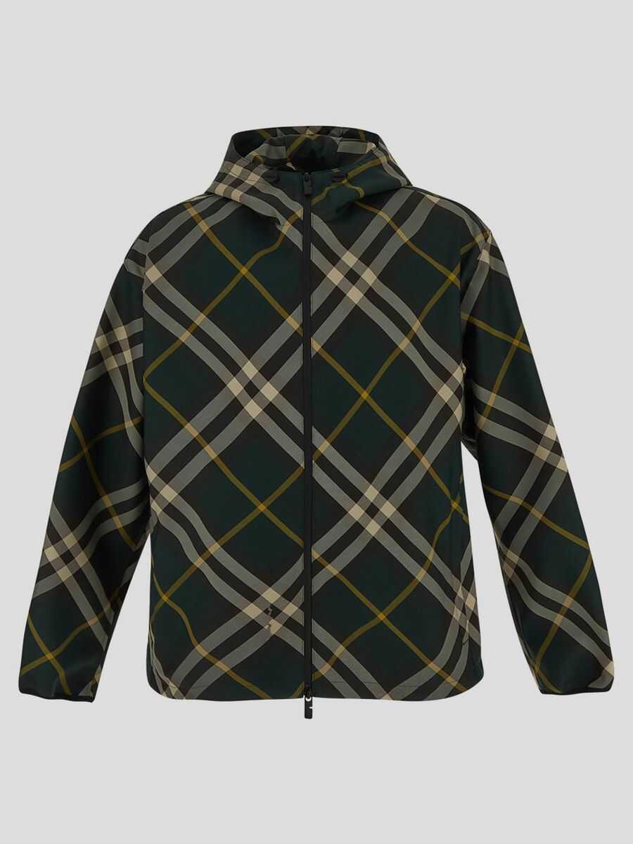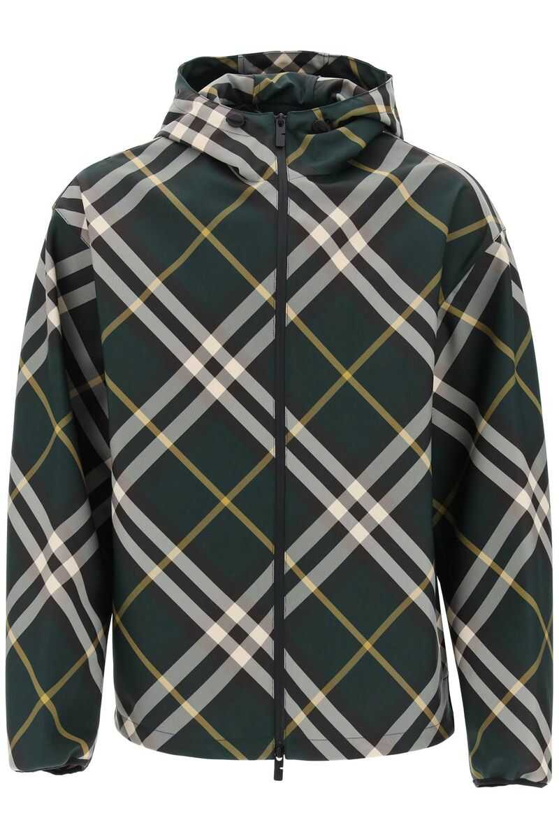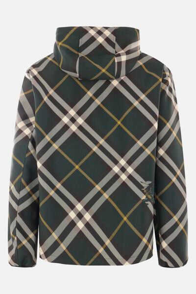 green signature Equestrian Knight motif embroidered logo check pattern drawstring hood front zip fastening long sleeves two front welt pockets straight hem