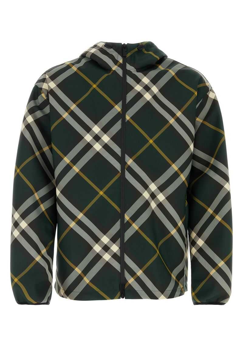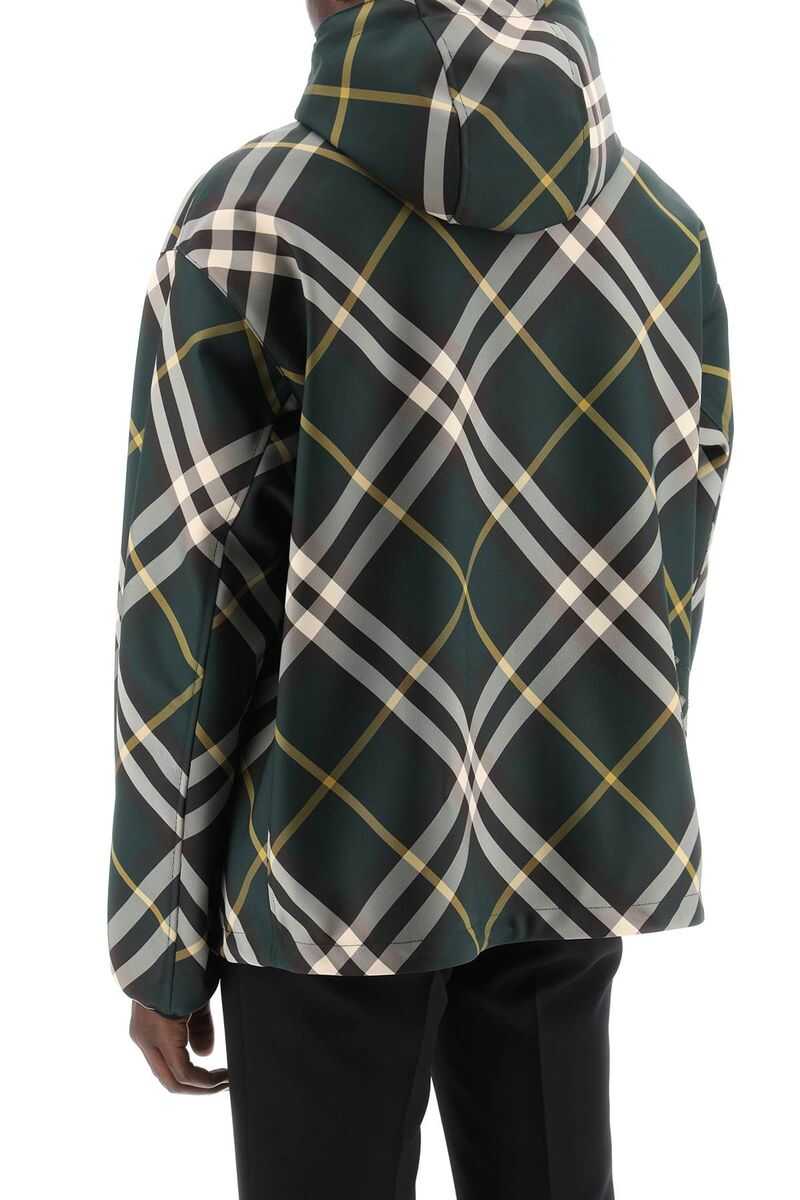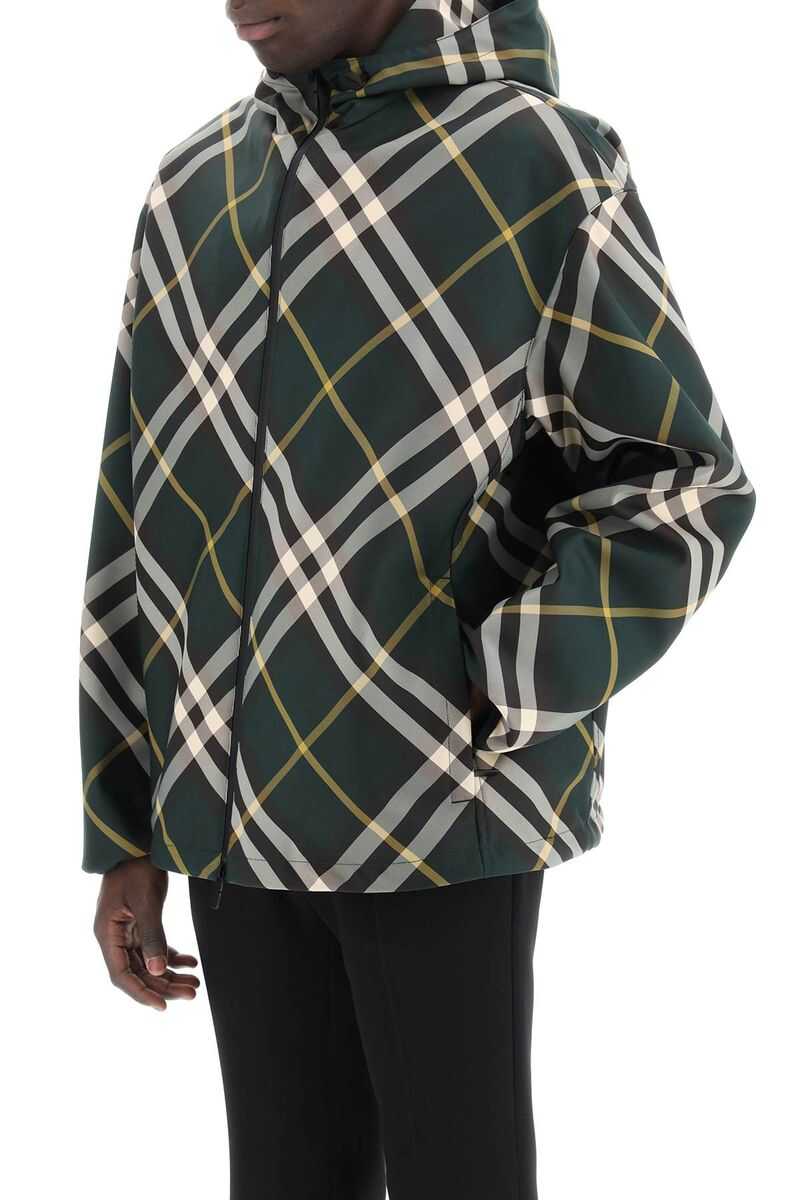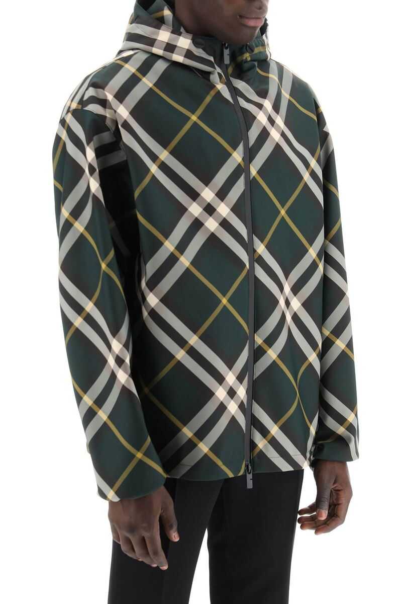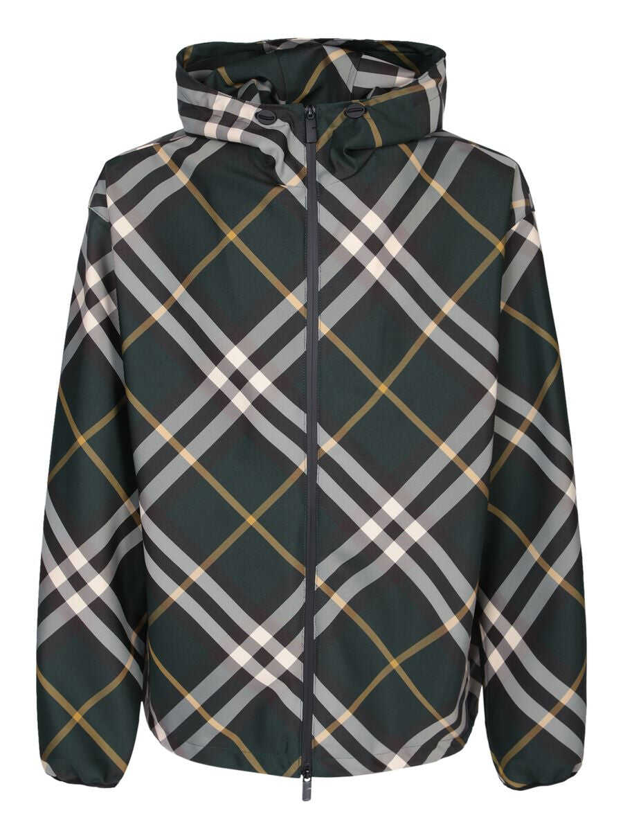green signature Equestrian Knight motif embroidered logo check pattern drawstring hood front zip fastening long sleeves two front welt pockets straight hem