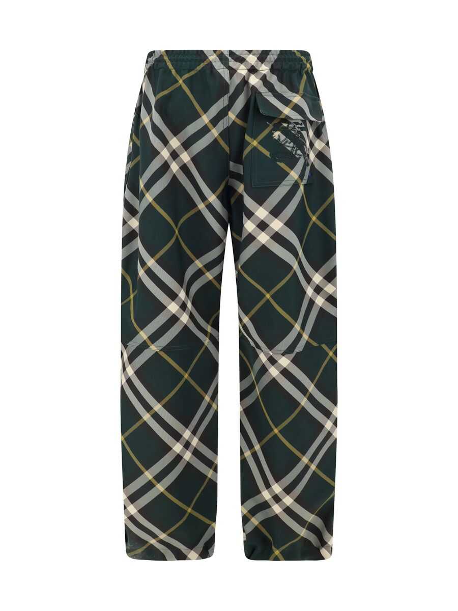 dark green check pattern signature Equestrian Knight motif elasticated waistband wide leg slip-on style two rear flap pockets