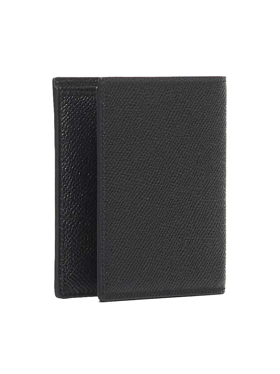 Dolce & Gabbana’s black Dauphine leather bifold wallet featuring logo plaque on the front, eight card slots and internal bill compartments.