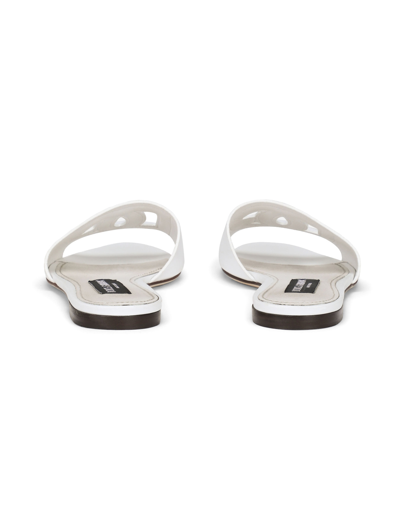 White calf leather embossed logo to the front cut-out detailing almond toe branded insole flat rubber sole.