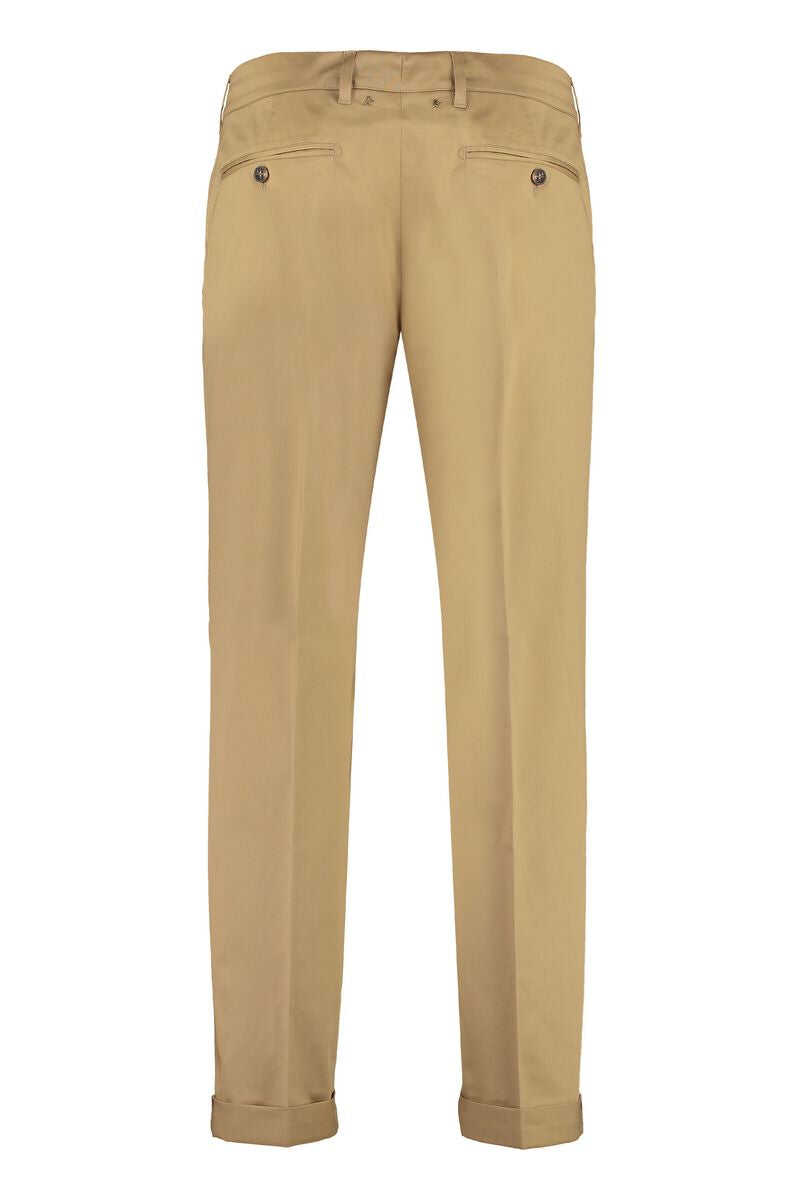 Trousers Golden Goose made of Camel colored stretch cotton. Belt loops. Side america pockets. Zip button closure. Double star applied on the back. Welt pockets with button on the back.
