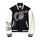 black/white leather/virgin wool faux-pearl embellishment signature Diag-stripe print appliqué logo embroidered logo to the front stand-up collar press-stud fastening two side welt pockets long sleeves ribbed cuffs and hem