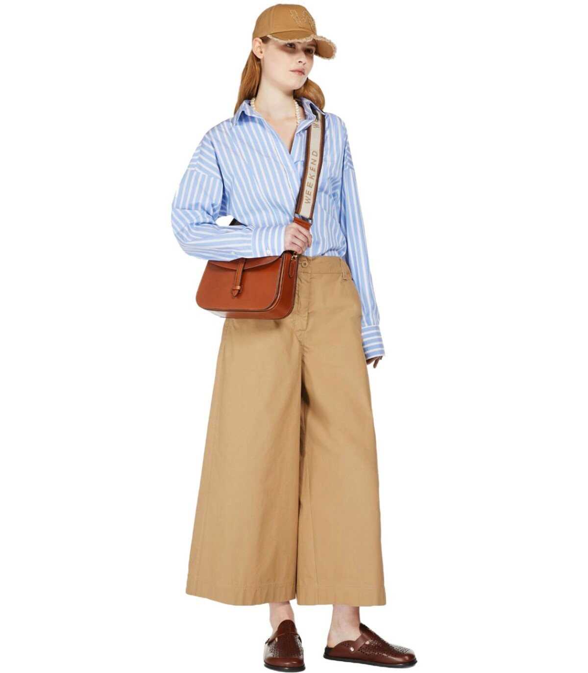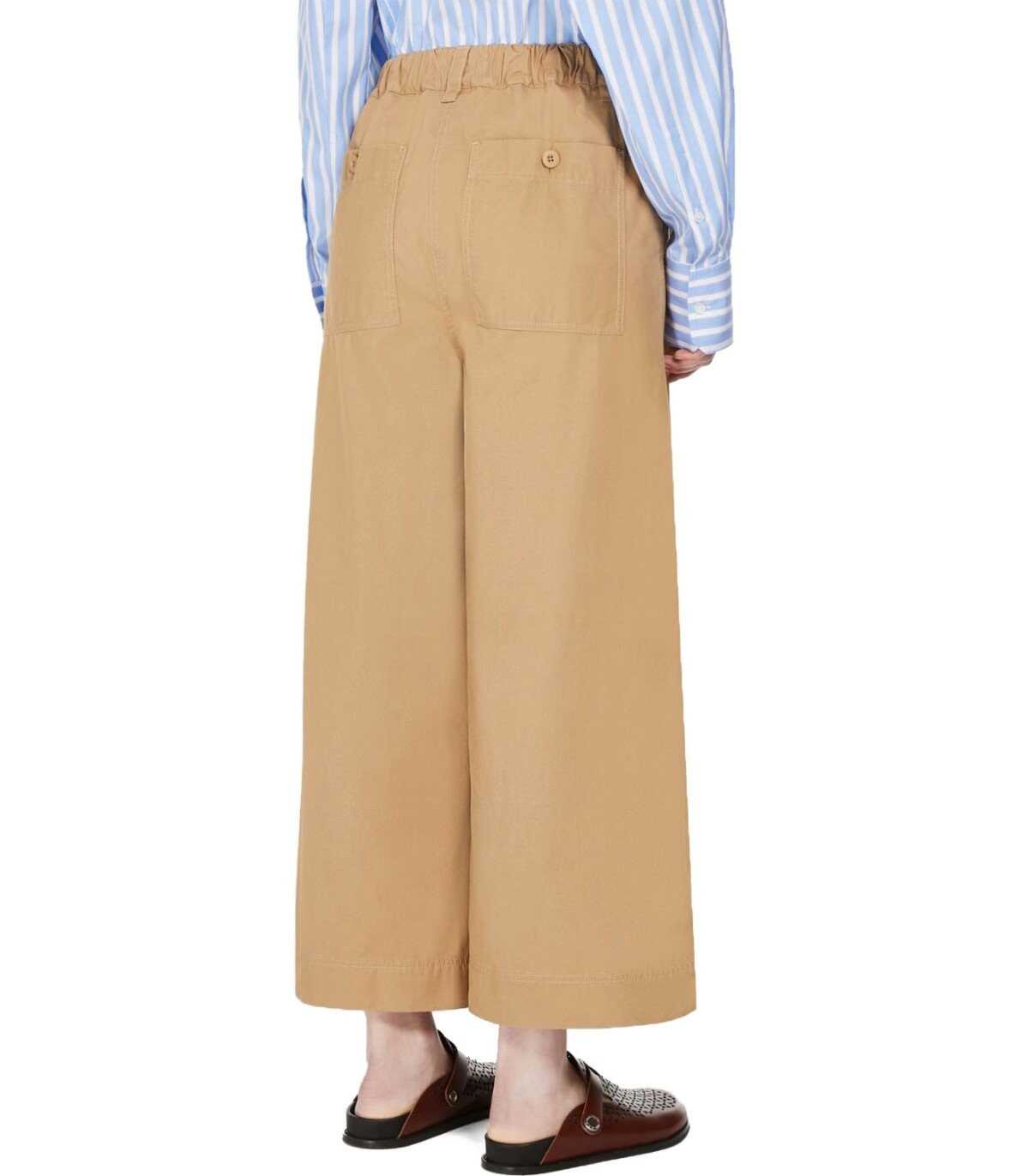 Beige cotton canvas trousers Giudea by Max Mara Weekend. High waist with belt loops, elastic insert at the back, zip and button closure. Side and back pockets. Wide leg.
