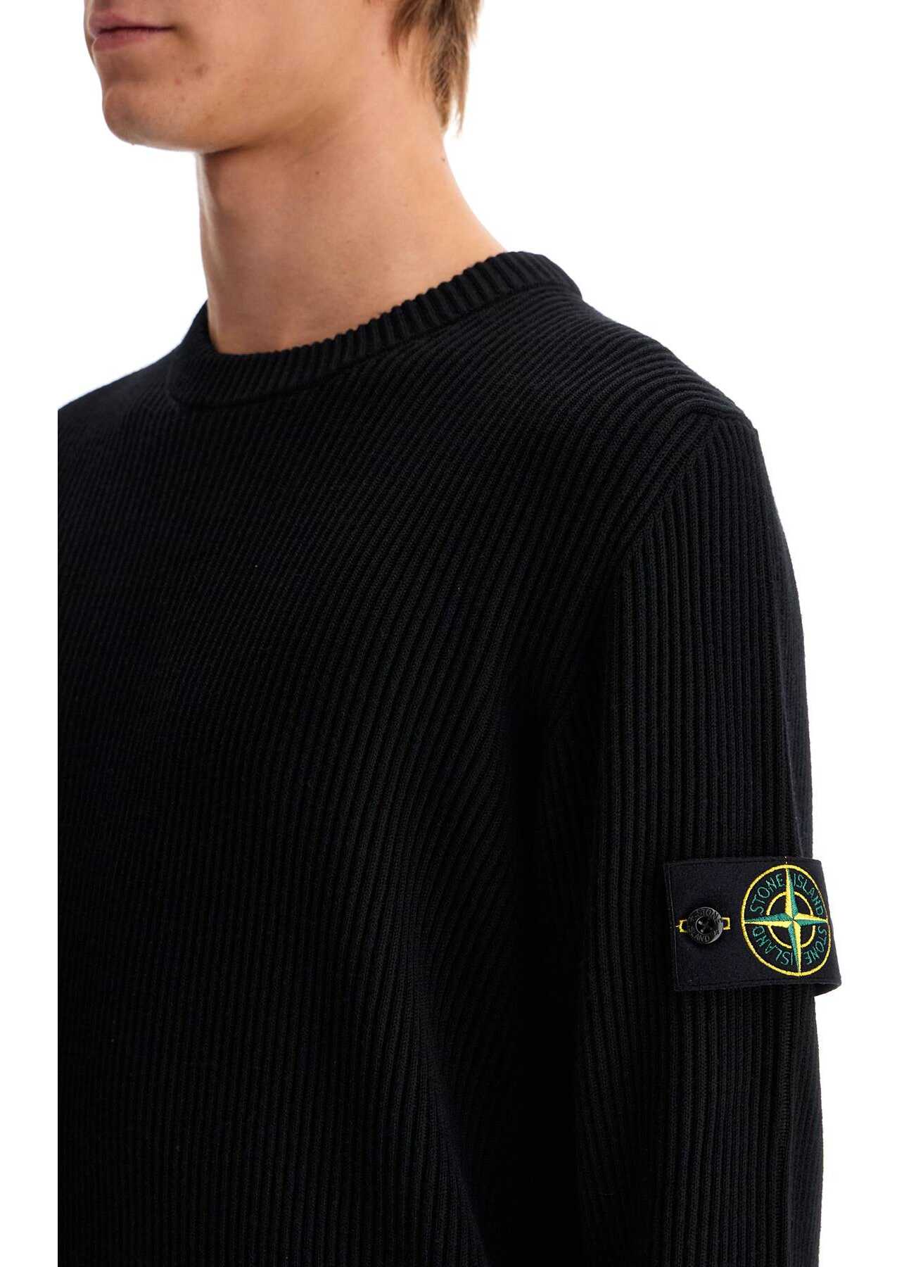 This Stone Island crewneck sweater is made of RWS virgin wool rib knit, with a horizontal band design on the cuffs and fine rib trims. The brand's iconic badge is featured on the left sleeve. Regular fit. Our model is 187 cm tall and wears a size L.