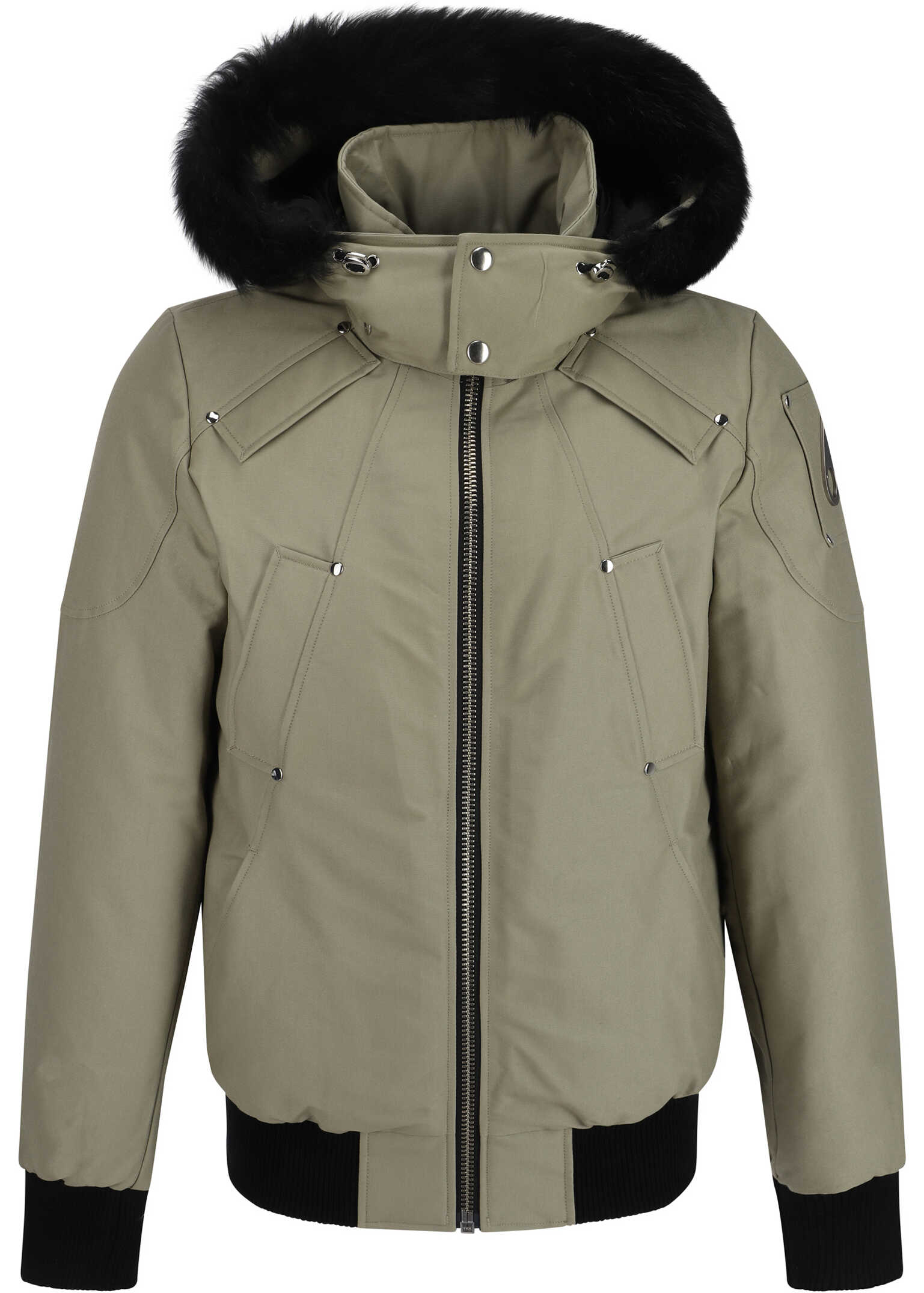 Cotton Original Ballistic Bomber Jacket by Moose Knuckles features a buttoned removable hood and faux fur detail on the perimeter, a high collar, a front zipper closure, four welt pockets on the front, an all-over quilted and padded design, elastic ribbed cuffs, a ribbed hem, an applique metal iconic brand logo plaque on the left arm, and a regular fit.