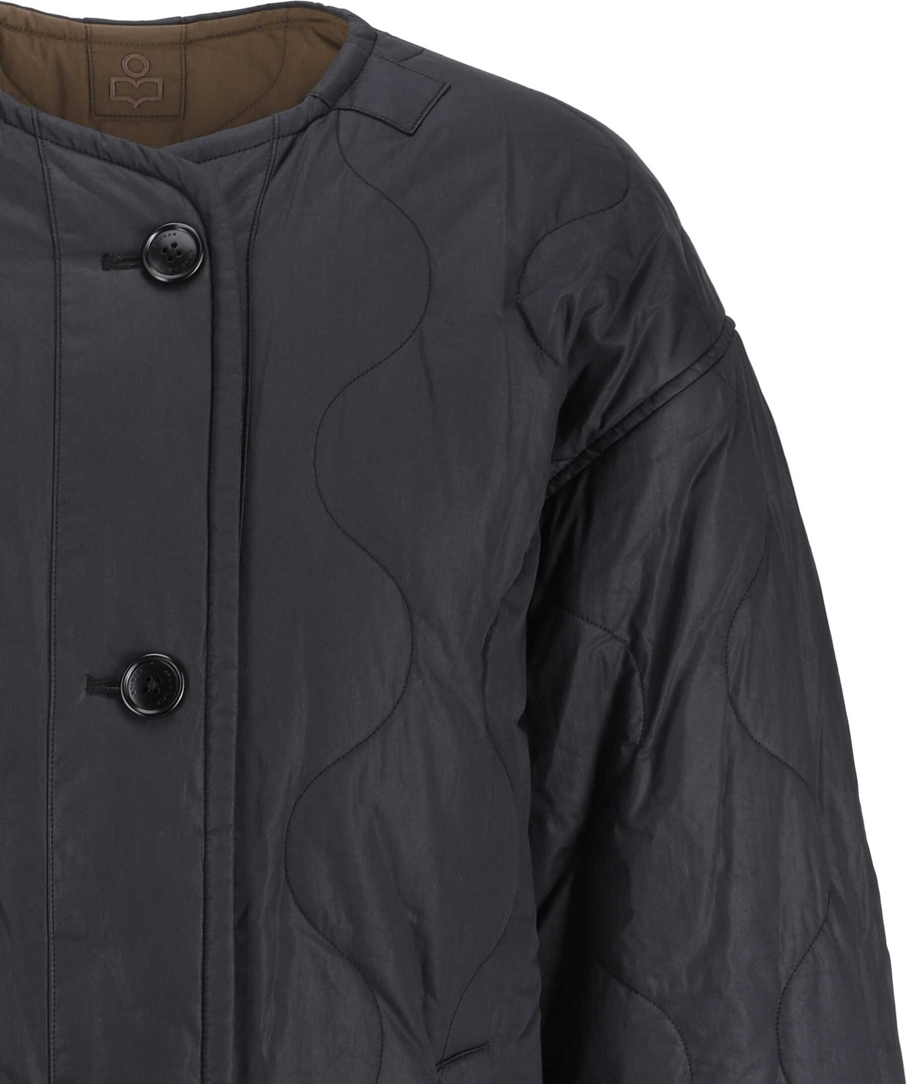 Cotton Reversible Nesmae jacket from Marant Etoile, all-over quilted and padded design, button front closure, two side welt pockets, iconic brand logo embroidered on back, monochrome pattern, oversize fit.