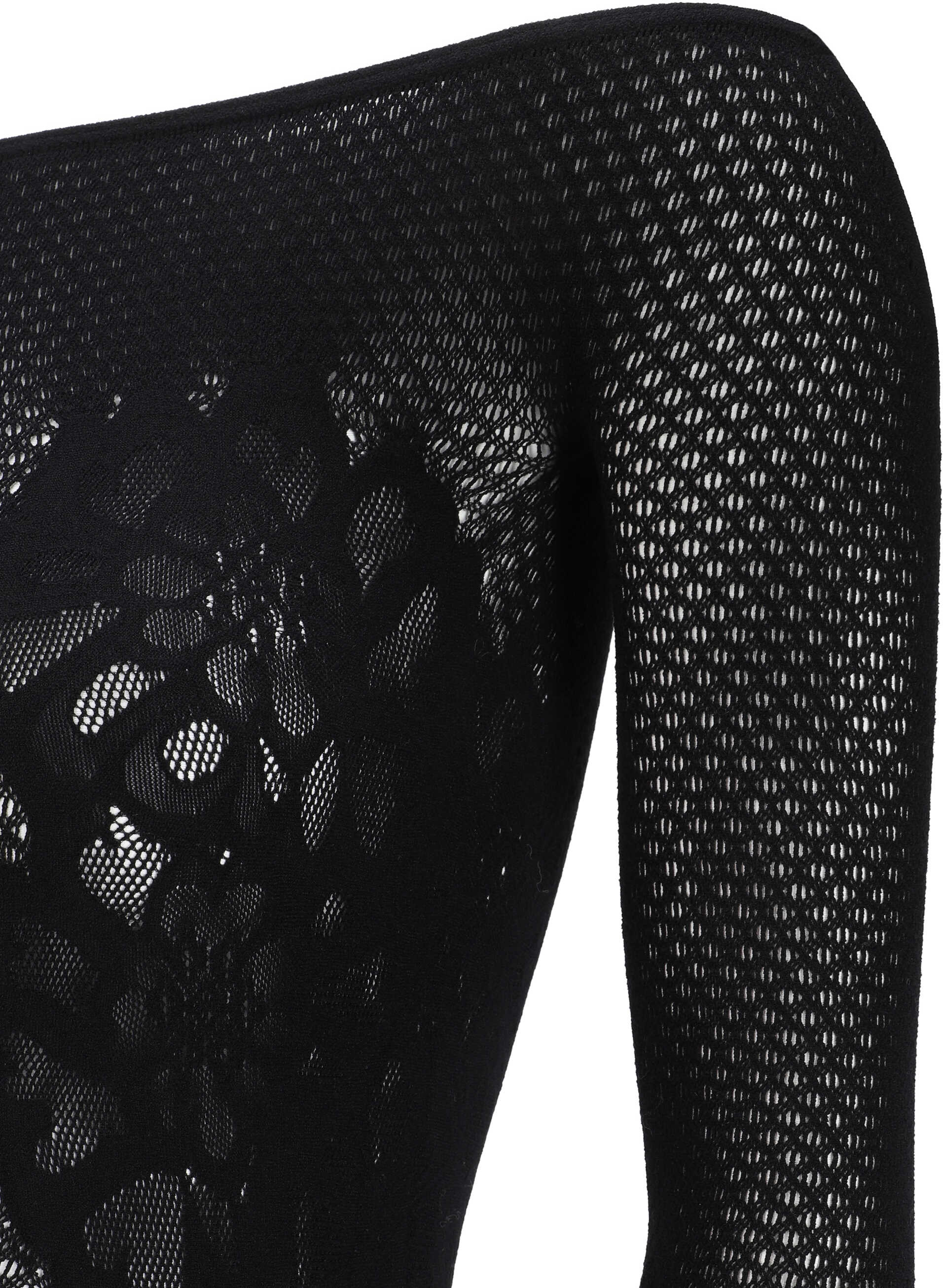 Lace Tattoo Jumpsuit by Wolford, all-over semi-transparent floral lace pattern, off-shoulder design, slim stretch fit.