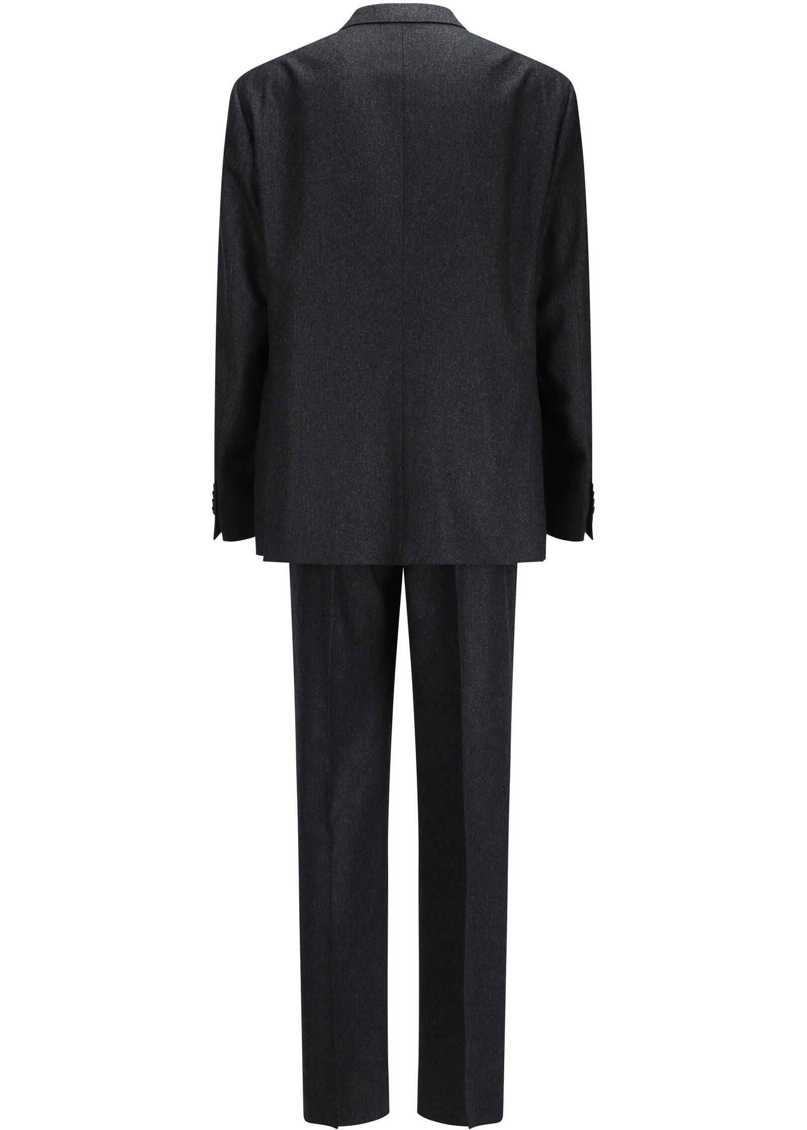 Suit in Virgin Wool by Gi Capri, consisting of jacket and pants, mélange pattern. Wool blazer jacket, front button closure, two welt pockets with patch flap on front, one slit pocket on front, classic lapels. Classic wool pants, front zipper and button closure, two side slash pockets, two welt pockets on back, belt loops waistband.