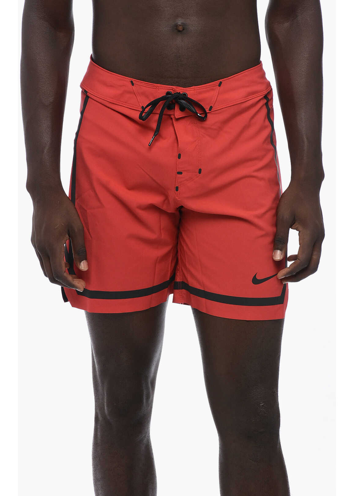 Stretch Fabric Swim Shorts With Contrasting Details