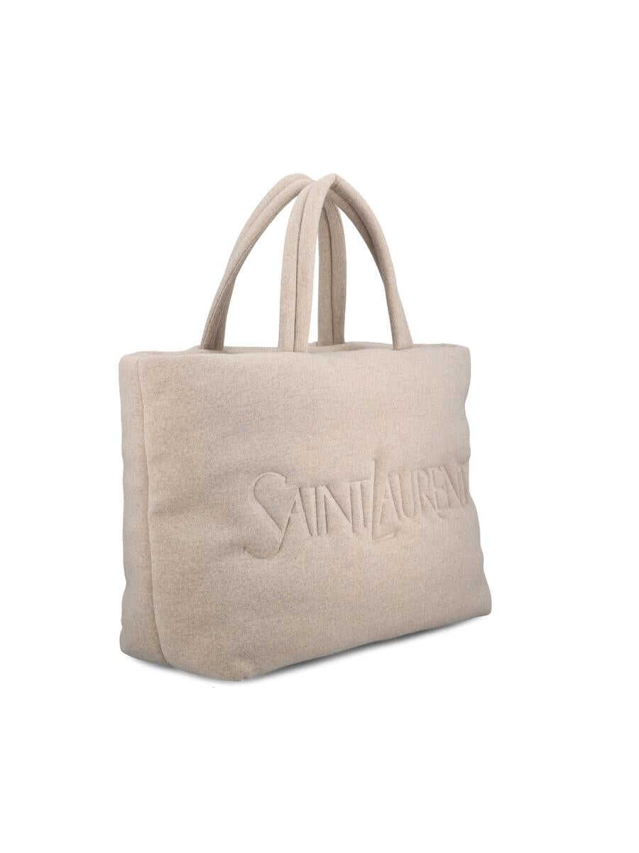 - Material: 100% jersey - Color: beige - Lined inside - Other details: Saint Laurent lettering on front - Made in Italy - Dust bag - Item number: 756269FADNJ9052 - Size: 41-50 x 43 x 17 cm