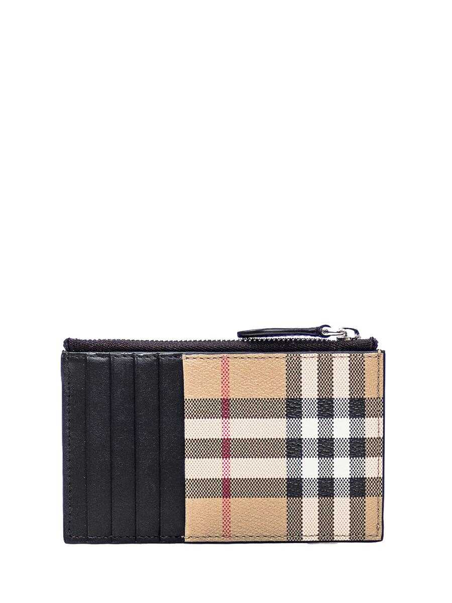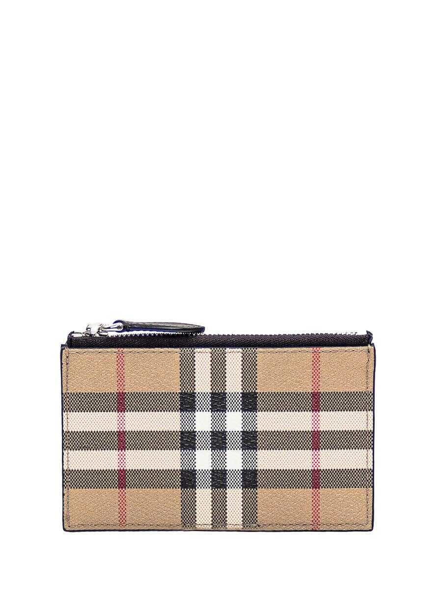 Card holder with Burberry Check all-over pattern. Compartments for credit cards. Zipper pocket. Width:13.5 Height:8 Depth:1