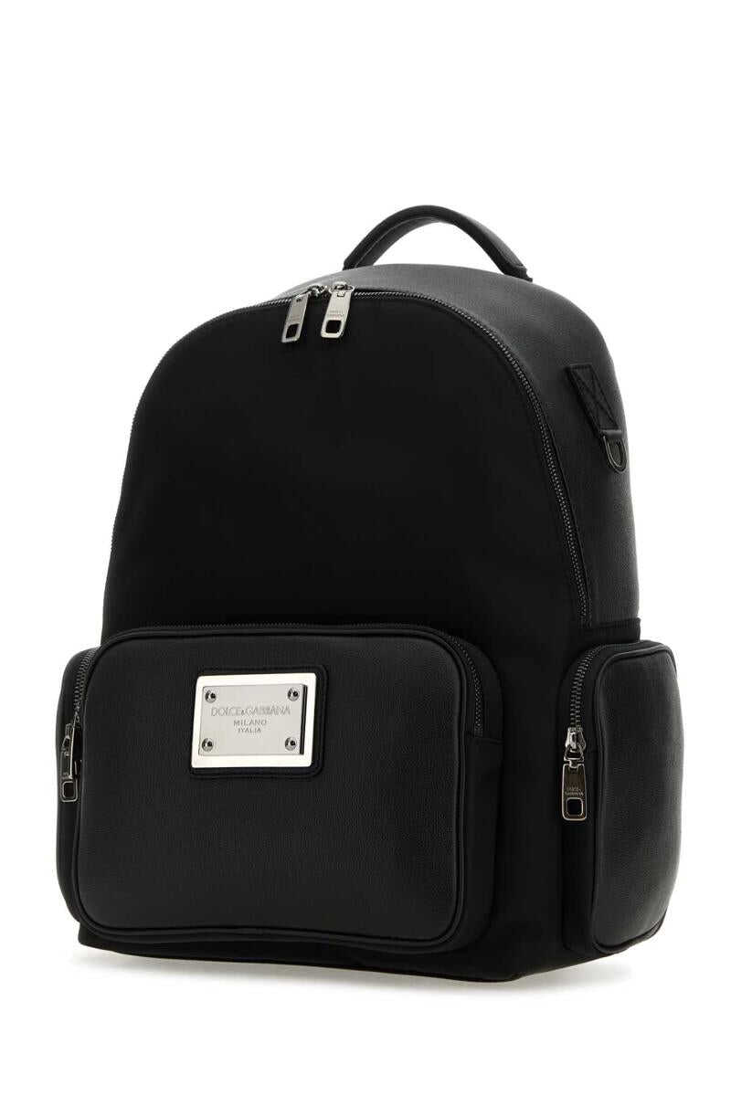 Black fabric and leather backpack Width: 32 cm Height: 35,5 cm Depth: 24 cm