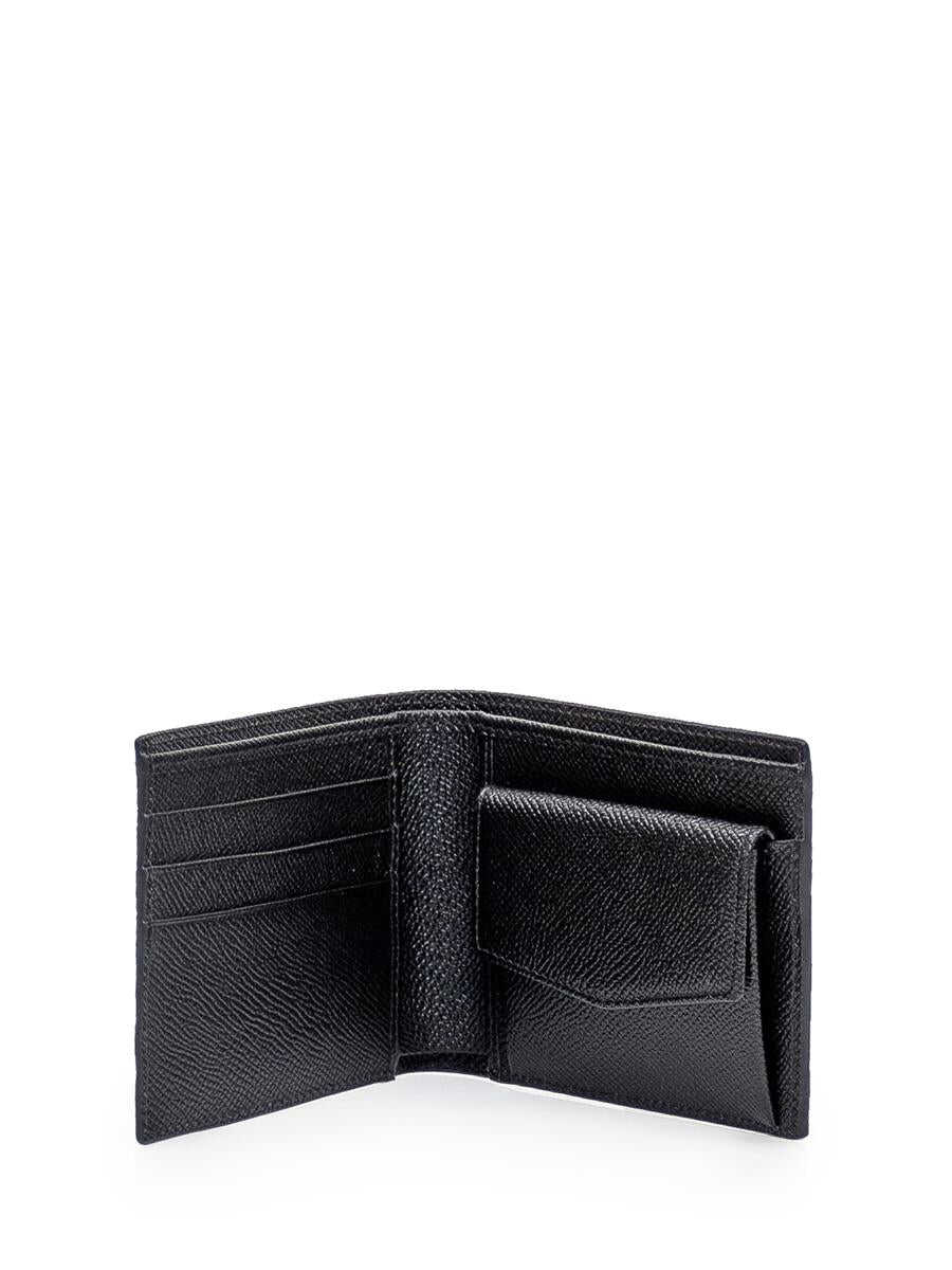Black wallet in grained leather. Compartments for credit cards and bills. Inside pocket with button. Metal nameplate with engraved logo above on front. Width: 11 Height: 9 Depth: 3