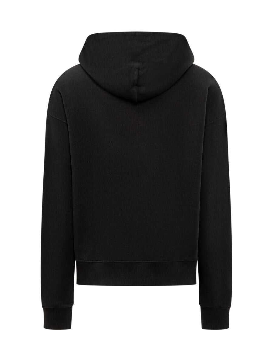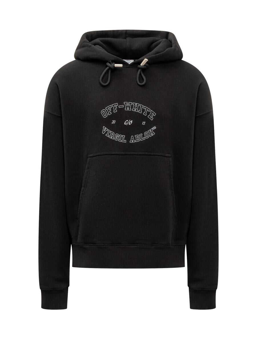 Long-sleeved cotton sweatshirt. Drawstring hood. Ribbed hems. Maxi pocket on front. Off White college-style logo printed on front.