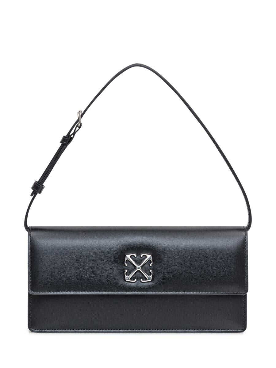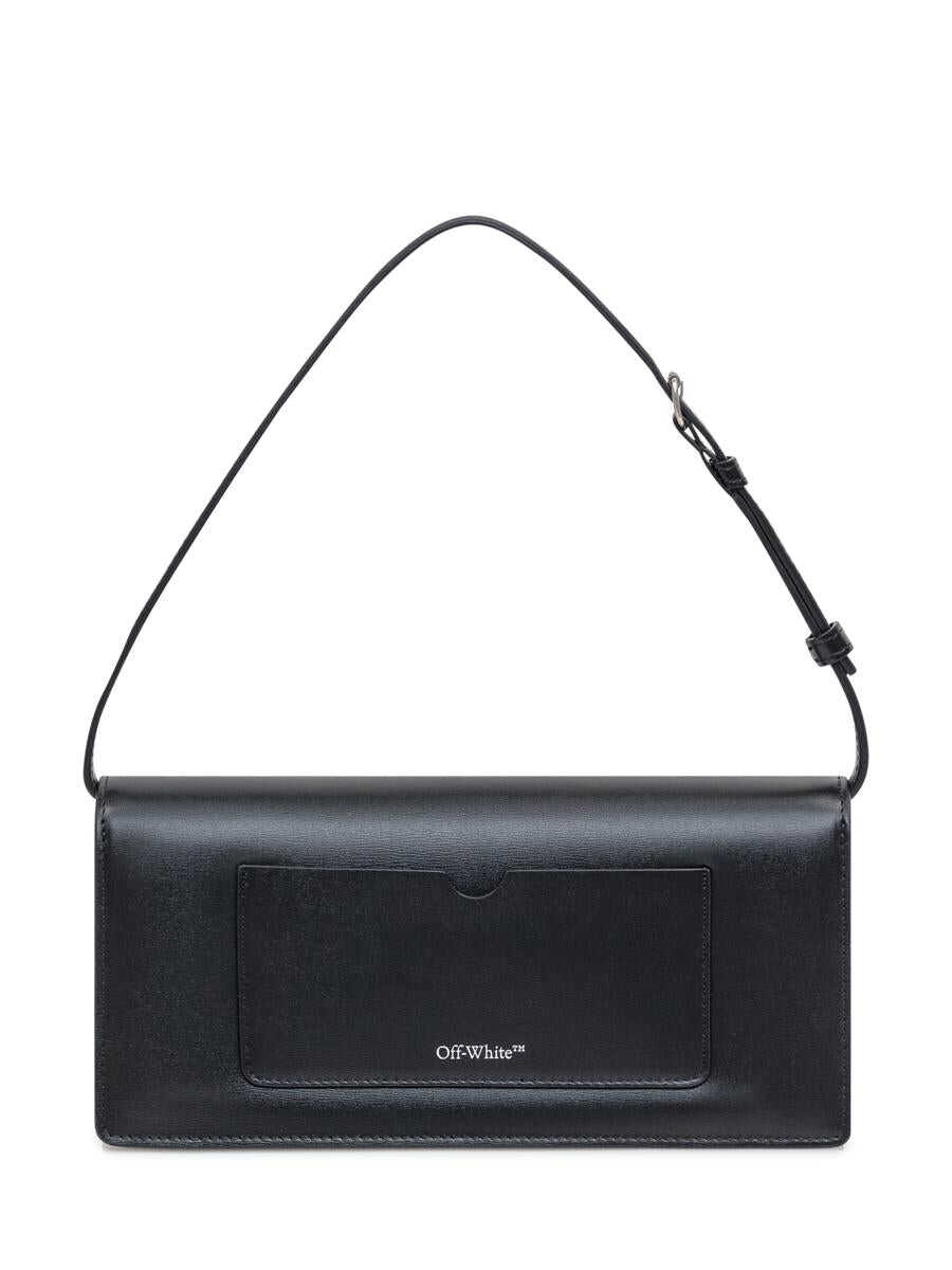 Black leather bag. Adjustable shoulder strap. Front flap. Logo details. Height: 12 Width: 26 Depth: 7