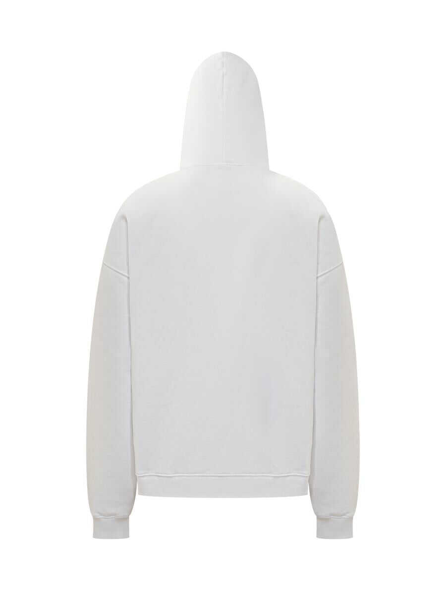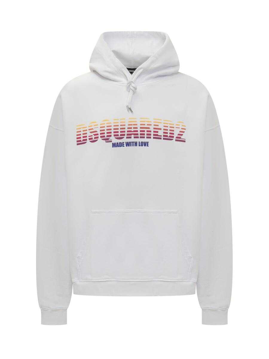 Long-sleeved sweatshirt. Drawstring hood. Ribbed hems. Single pocket on front. Printed logo on front.