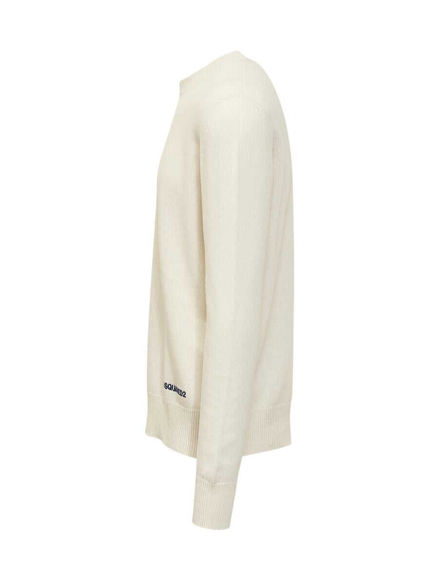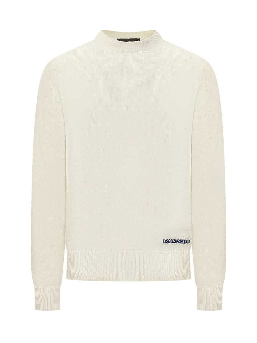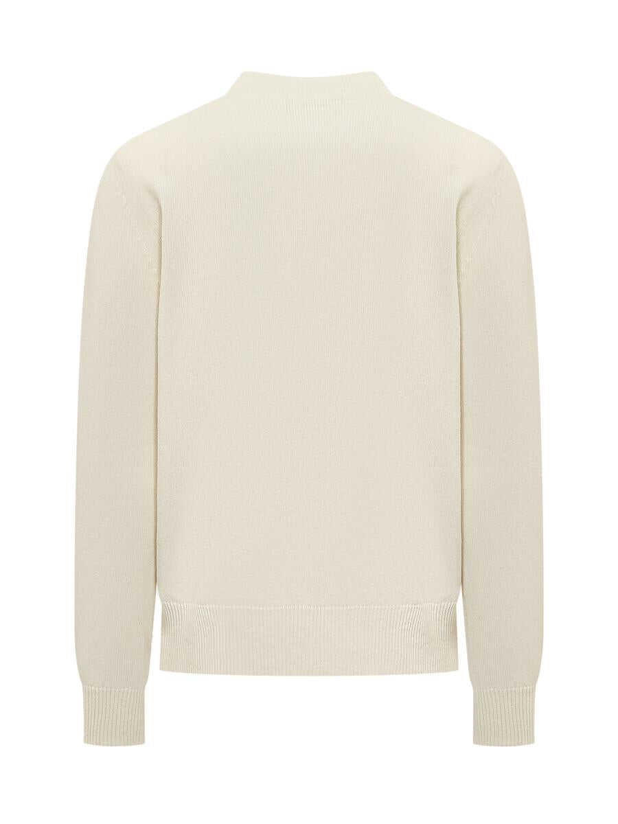 Wool-blend long-sleeved sweater. Crew neck. Ribbed hems. Embroidered logo on front.
