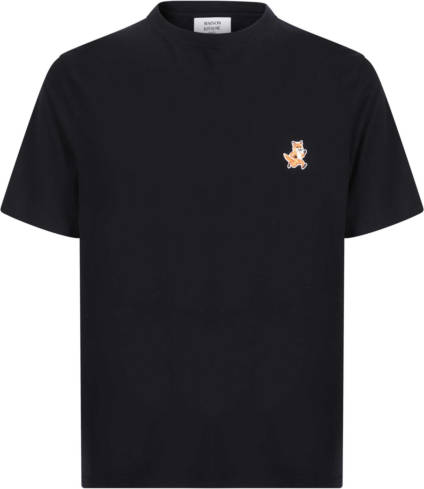 Cotton T-Shirt by Maison Kitsuné, ribbed crew neck, contrast stitched iconic fox logo patch on front, monochrome pattern, regular fit.
