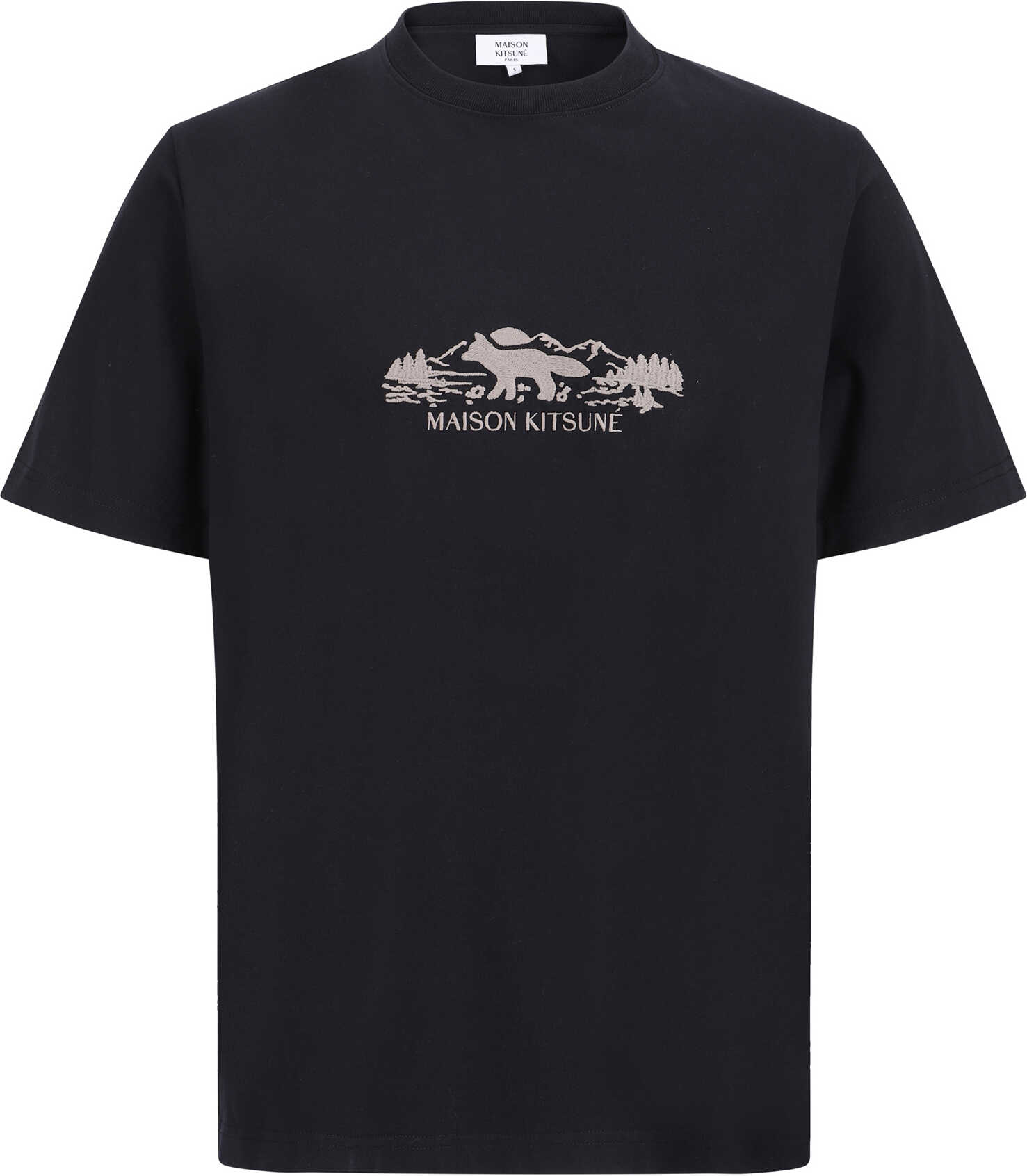 Cotton T-Shirt by Maison Kitsuné, ribbed crew neck, iconic brand logo stitched in contrast on front, monochrome pattern, regular fit.