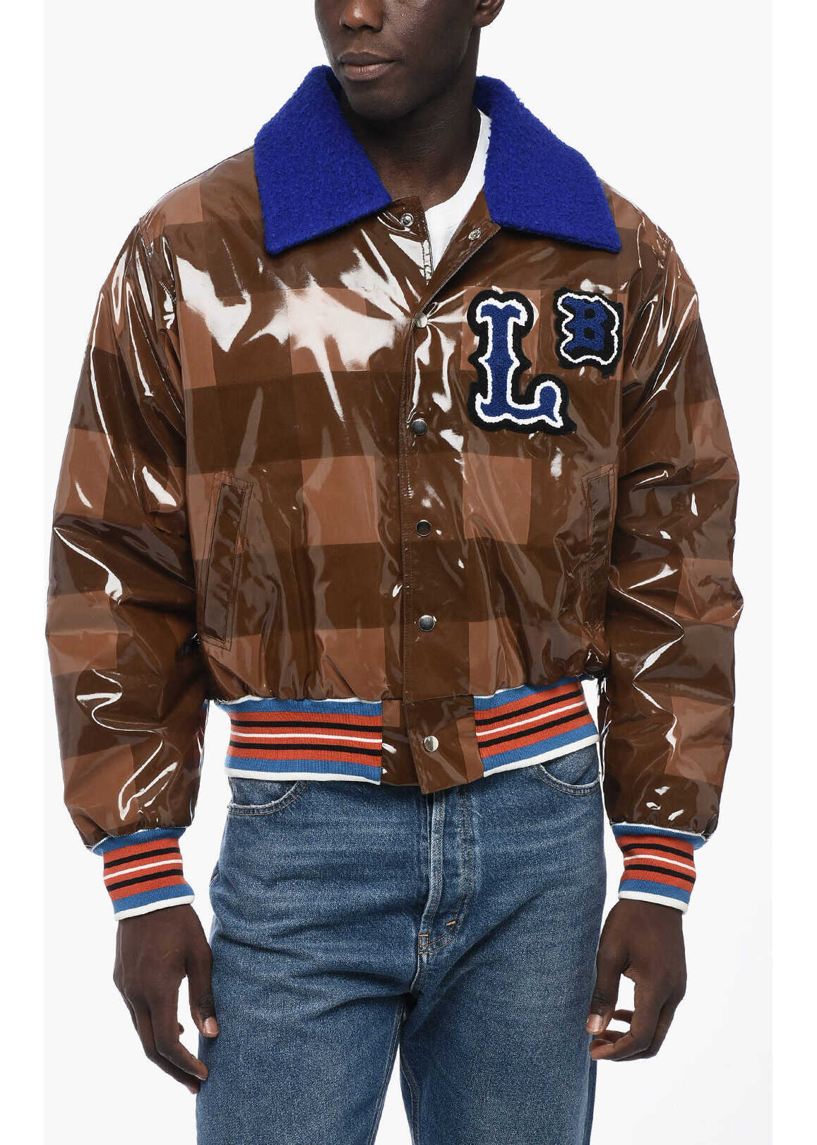 Checked design Logo Long sleeves Buttons Embroidery Front closure Brown Autumn-Winter Materials: 50% Pl, 50% POLYURETHANE FIBER Product code: P600134 Model is wearing size M Model measurements Height: 197 cm Chest: 106 cm Waist: 81 cm Hips: 102 cm
